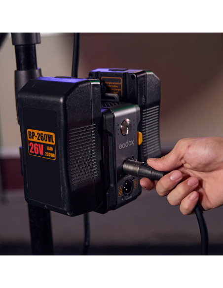 The LA150R offers convenient power options, with a universal 48V dc power interface and compatibility with V mount batteries for mobile lighting setups, when combined with the Godox DBP V Dual Battery Plate (sold separately).