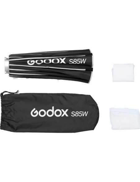 The Godox S85W Multifunctional Bowens Mount Softbox is designed to create soft and even lighting, ideal for portrait, fashion and product photography.