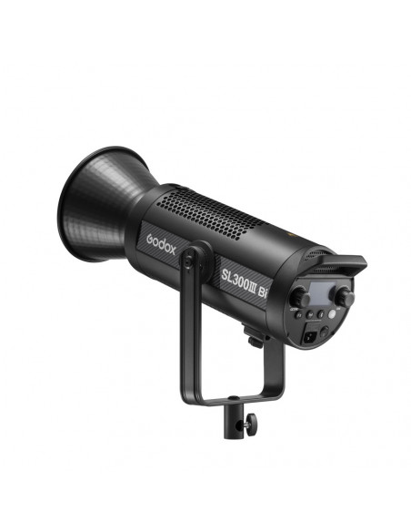 The rotating 360° U shaped yoke adjusts for optimal lighting with various modifiers and nearby subjects.,