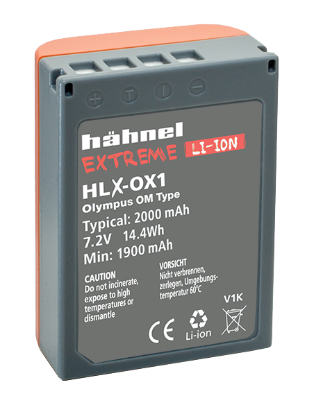 Hähnel Battery Extreme Olympus HLX-OX1 / BLX-1ØGET ultrahøj kapacitetEKSTRA holdbarhed under ekstreme forholdLang levetid på grund af den højere kapacitetLi-ion-celler af høj kvalitetHøjt energitæthedsforholdGod spændingsstabilitetKan klare mere end 500 opladnings-/afladningscyklusser3m faldsikkerStødabsorberende konstruktion2000mAh7,4 V14.8WhErstatning for Olympus BLX-1