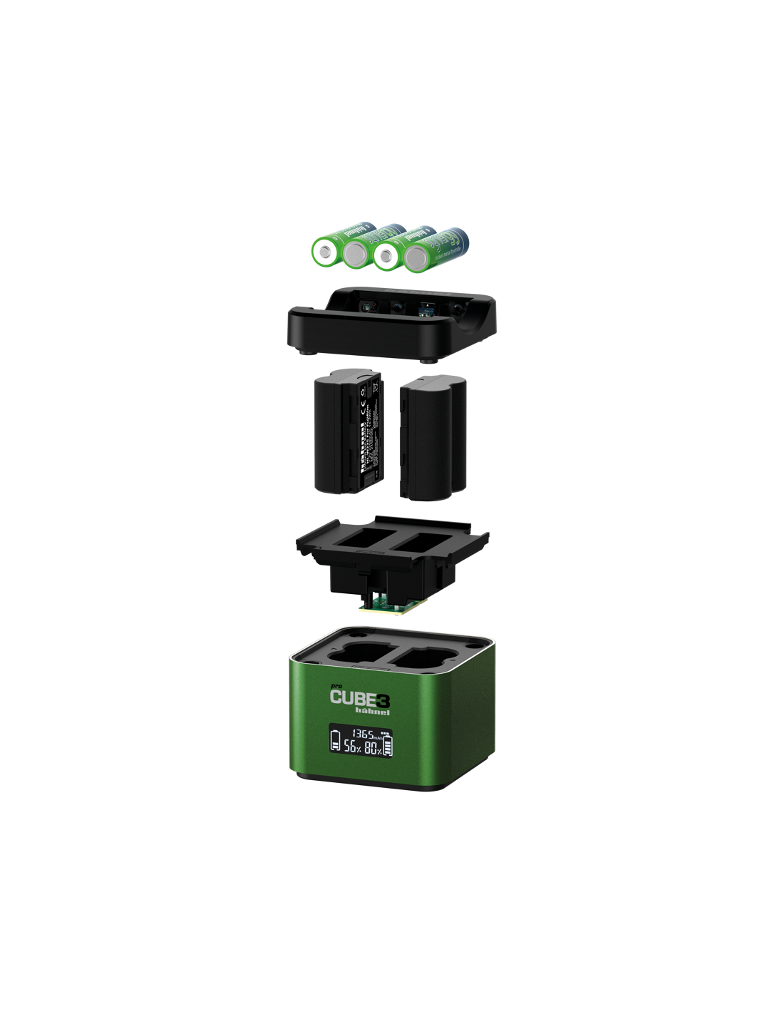 Hähnel ProCube 3 Twin-opladerLeveres med de nødvendige batteriplader til Fujifilm: NP-W126 / NP-W235 og AA-batterierOplader 1 eller 2 kamerabatterier på samme tidHurtig opladning på 15 minutter - mAh-aflæsning viser, hvor meget kapacitet der er tilføjet under opladningen (viser ikke, hvilken kapacitet der allerede er i batteriet)LCD-display med omfattende opladningsinformationBatteriets sundhedstjekUSB Type-C PD 3.0 30 Watt-indgangsstik (fungerer med enhver USB-C-adapter / powerbank)Intelligent hurtig IC-opladningskontrolIntegreret 2A USB-A-port til opladning af USB-enhederAA-bakke oplader 4 AA-batterier samtidigt (oplader kun, når 4 AA-batterier er indsat samtidigt)ProCube3 kan oplade både originale kamerabatterier og tredjepartsbatterier.Kabelløs batteripladeBatteripladen kan udskiftes med en anden version uden kabel, som gør, at din oplader kan bruges til flere typer kamerabatterier (og AA-batterier).Kompatible batterier (opladningsplader fås som separate produkter)Canon: LP-E6/E6N/E6NH/LP-E6P / LP-E8 / LP-E17Nikon: EN-EL14 / EN-EL15 / EN-EL25Sony: NP-BX1 / NP-FW50 / NP-FZ100Olympus: BLN-1 / BLS-5 / BLH-1Panasonic: DMW-BLC12 / BLF19 / BLJ31 / BLK22