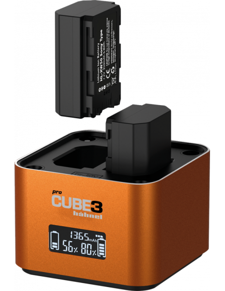Hähnel ProCube 3 Twin-opladerLeveres med batteriplader til Li-Ion-kamerabatterier: NP-BX1, NP-FW50 og NP-FZ100Oplader 1 eller 2 kamerabatterier på samme tidHurtig opladning på 15 minutter - mAh-aflæsning viser, hvor meget kapacitet der er tilføjet under opladningen (viser ikke, hvilken kapacitet der allerede er i batteriet)LCD-display med omfattende opladningsinformationBatteriets sundhedstjekUSB Type-C PD 3.0 30 Watt-indgangsstik (fungerer med enhver USB-C-adapter / powerbank)Intelligent hurtig IC-opladningskontrolIntegreret 2A USB-A-port til opladning af USB-enhederAA-bakke oplader 4 AA-batterier samtidigt (oplader kun, når 4 AA-batterier er indsat samtidigt)ProCube3 kan oplade både originale kamerabatterier og tredjepartsbatterier.Kabelløs batteripladeBatteripladen kan udskiftes med en anden version uden kabel, som gør, at din oplader kan bruges til flere typer kamerabatterier (og AA-batterier).Kompatible batterier (opladningsplader fås som separate produkter)Canon: LP-E6/E6N/E6NH/LP-E6P / LP-E8 / LP-E17Nikon: EN-EL14 / EN-EL15 / EN-EL25Olympus: BLN-1 / BLS-5 / BLH-1Panasonic: DMW-BLC12 / BLF19 / BLJ31 / BLK22Fujifilm: NP-W126 / NP-W235