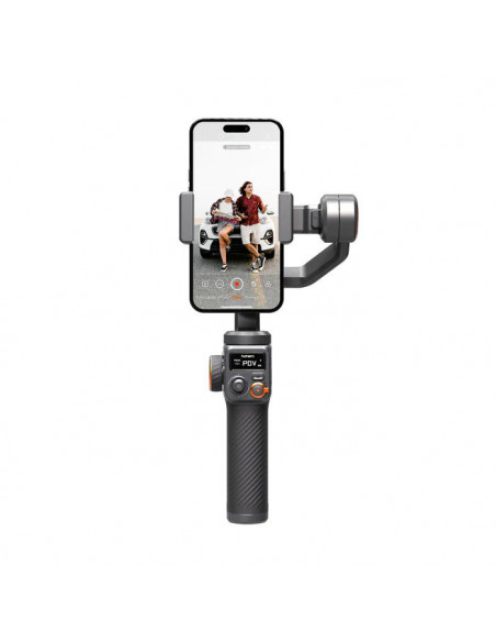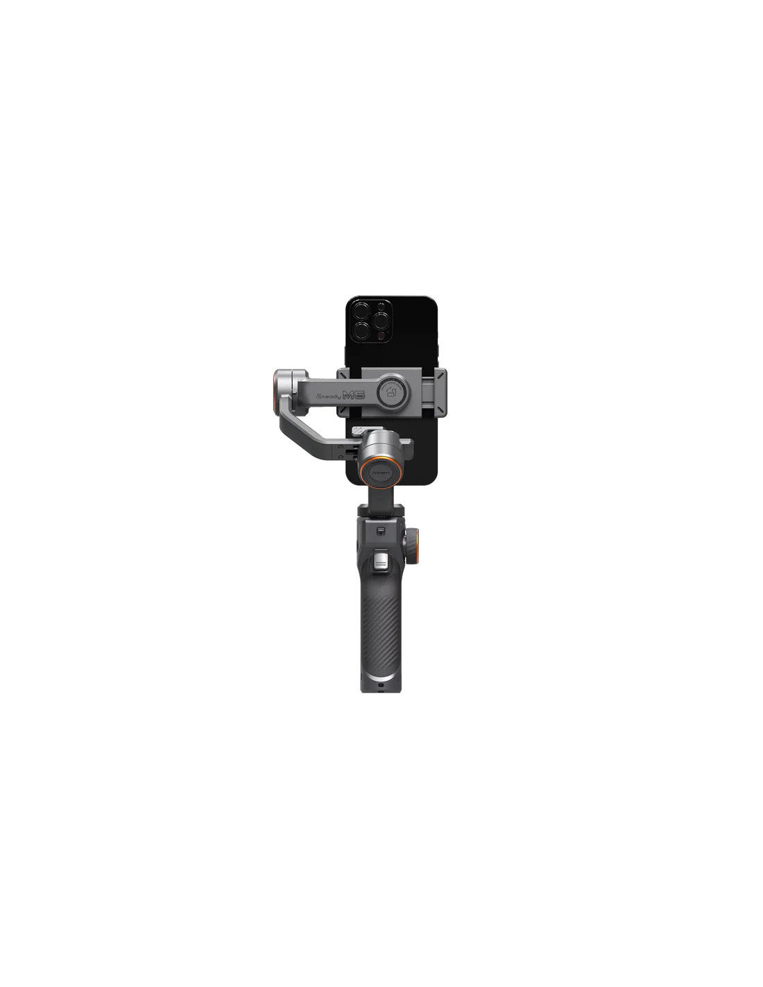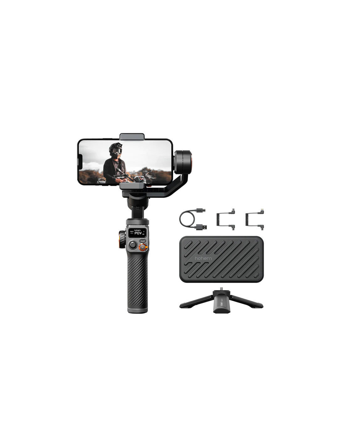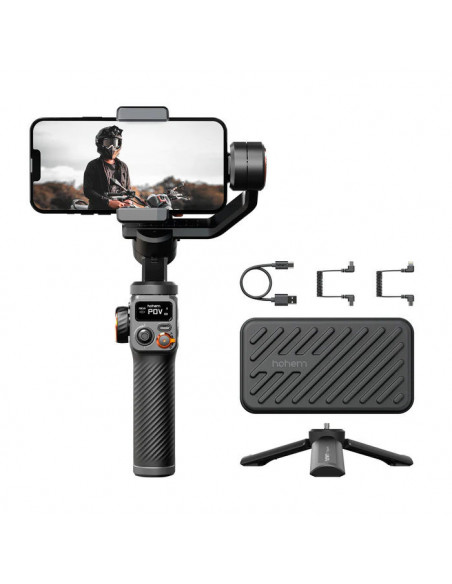 The ideal partner of vloggers, live streamers, vacationers and filmmakers The iSteady M6 is a professional 3 axis smartphone stabilizer ideal for vloggers, live streamers, vacationers and filmmakers who want to create smooth and stable content. The enhanced 3 axis structure offers free movement from all angles. Moreover, the 360° infinite panning rotation, iSteady 7.0 anti shake system and much more allow you to capture stunning and epic shots even when filming solo. Highlights Stabilization iSteady 7.0 Infinite 360° rotation range OLED screen Ultra Wide Angle Shots Switch to ultra wide angle shooting mode by pressing the multifunction trigger 4 times, it is perfect for capturing an unobstructed image. Stabilization iSteady 7.0 It allows users to capture on the move and shake free creations that are overwhelming. Free angle movement The 335° tilt rotation & wider space between axes ensure smooth movement from all perspectives, even at extreme low angles. Infinite 360° rotation range Press the M button three times in a row to enable Inception mode that rotates your smartphone camera 360° indefinitely for an impressive shooting effect. OLED screen Easily check various gimbal parameters, Bluetooth status, battery level, gimbal mode and so on. Work status at a glance. Up to 400g payload capacity The 3 powerful high torque motors support a payload of up to 400g. The four 1/4" 20 UNC ports allow multiple accessories to be added. Unlock the creative potential of your iSteady M6. Compatible Devices The Hohem iSteady M6 Mobile Phone Gimbal is suitable for phones with a width of 58 98mm. Hohem M6 is suitable for many large screen phones such as iPhone 14Pro/Samsung S22&23 Ultra/HUWEI Mate50/Honor Magic5 Pro/Google Pixel Phone/Xiaomi 13., Weight (Gimbal): 551g (Including battery) Main material: High quality composites Load capacity: 400g Mobile width: 58 mm ~ 98 mm Mechanical range: Pan: 360° infinite rotation; Roll: 335°; Tilt: 335° Operating Temperature: 10~45°C Motor Protection: The motor can be protected from damage due to improper use by automatically turning off the gimbal. Battery Capacity: 2600mAh 7.4V/ 19.24Wh Battery life: Up to 18 hours (under ideal conditions with the gimbal fully balanced) Charging time: 3 hours (5V/2A) APP: Hohem Joy