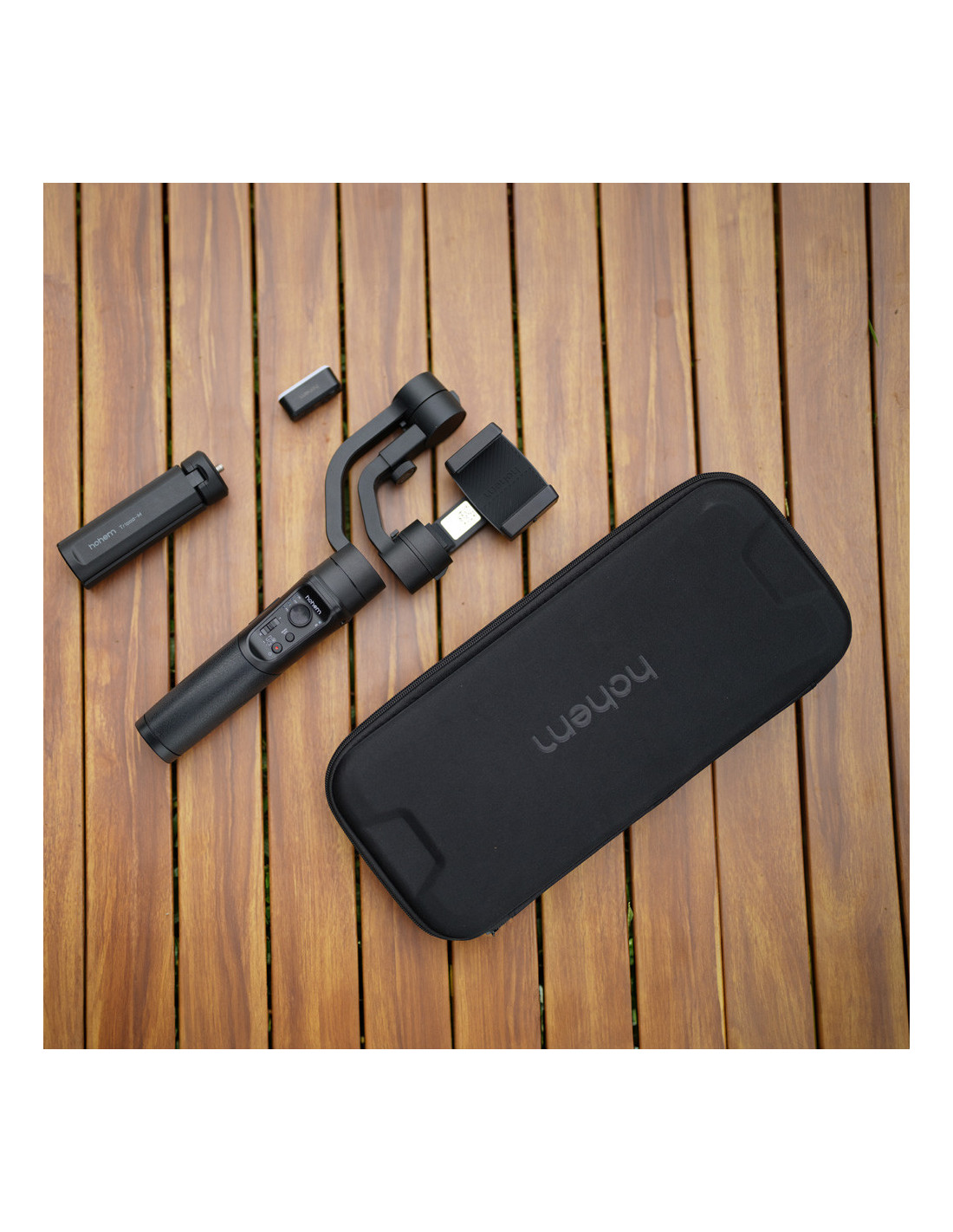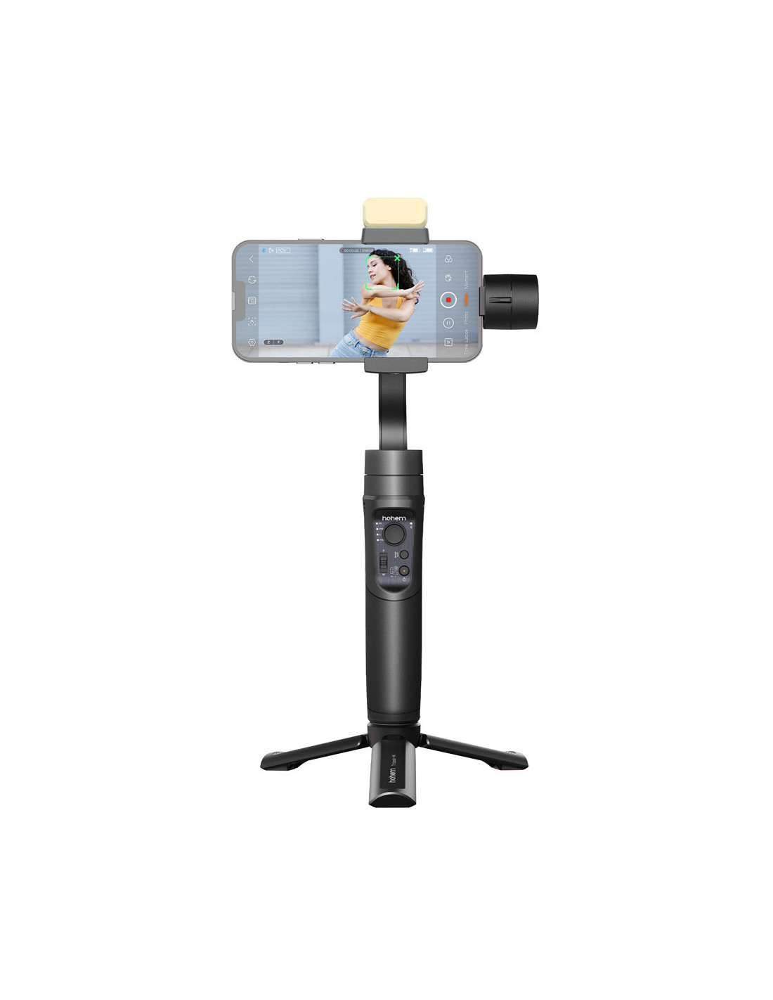 iSteady 7.0 stabilization The iSteady 7.0 anti shake algorithm and orthogonal 3 axis design make it unique in creating ultra smooth video while allowing movement from all angles. Highlights Create ultra smooth movements Magnetic Fill Light Quickly switch between landscape and portrait More accurate face & object tracking Magnetic Fill Light Brilliance in every shot. Just click! Adjust brightness in ten levels for different lighting conditions. Choose from cool, warm or natural. 600° Rotation The pan motor can see its 600° rotation to do incredible spin shooting (inception mode), making your movies more engaging. Quickly switch between landscape and portrait Just manually rotate the roll axis arm while keeping the gimbal horizontal. Reverse charging (DC out charging for smartphones) Android: Recharge with the included USB C to USB C cable. iOS: Recharge with USB C to Lightning cable (not included). App Hohem Joy One tap blockbusters with numerous video templates in Moment Mode, such as Inception, CloneMe, DollyZoom and Timelapse. You'll also enjoy more accurate face & object tracking., Features Gimbal Weight: 474g including battery Dimensions folded: 294 x 120 x 47 mm Main material: High quality composites Payload Capacity: 280g Mobile Width Supported: 58mm ~ 89mm Battery Capacity: 18650li ion 7.4V/1800mAh/13.32Wh Battery Life: Up to 13 hours (Under ideal conditions with the gimbal fully balanced) Charging time: 2 hours (5V 2A) Mechanical range: Pan: 600° Roll: 320° Tilt: 320° Operating temperature: 10~45°C Protection motors: Gimbal automatically shuts down in case of improper operation of motors Features Fill light Weight: 16g Battery Capacity: 3.7V/300mAh Power: 1W Battery duration: 1 hour Illumination: Cold light (6500k) Warm light (3000k) Natural white light (5500k) , 1 x iSteady Mobile+ 1 x Tripod 1 x Storage Bag 1 x Type C Charging Cable