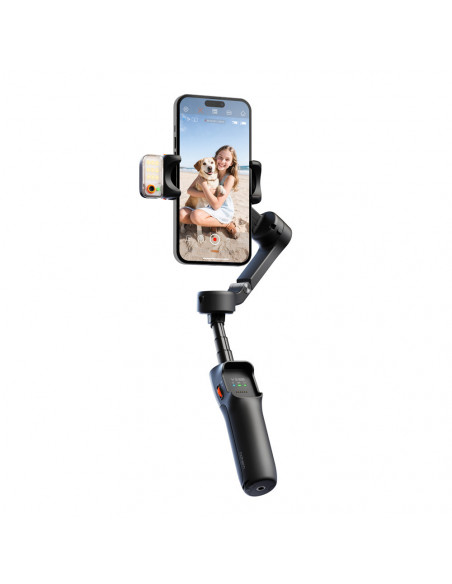 The all in one stabilisation solution The Hohem iSteady V3 Ultra Black is a foldable 3 axis smartphone gimbal with powerful AI features and an intuitive touchscreen. Whether you're filming while travelling, vlogging or taking creative shots, your footage will remain smooth and stable. The smart AI tracking effortlessly follows people, animals or objects, and you can control everything hands free with gestures. Compatible with smartphones from 58â98 mm and up to 400 g, so you can always create freely. Highlights Multimodal AI tracker to follow people, animals and other objects. Integrated CCT light. 1.22" touchscreen remote control Built in extension and tripod Foldable 3 axis stabilisation Multimodal AI tracker The multimodal AI tracking module recognises people, animals and objects. Thanks to gesture control, you can easily start or stop tracking, activate the shutter and switch between horizontal and vertical mode. You can also adjust the composition without touching the screen. Combined with the wide control range of 360° pan, 195° to +135° roll and 35° to 45° tilt, every subject remains smoothly and accurately in view. Touchscreen and creative modes The 1.22 inch full colour touchscreen offers intuitive control, live feed monitoring and target selection. The âScenarioâ function allows you to automatically create panoramas, timelapses and creative rotations such as inception shots. All functions can also be controlled via the integrated touchscreen remote control with a range of up to 10 metres. Lighting and extras The CCT fill light gives you a choice of cool, neutral and warm colour temperatures, continuously dimmable and remotely controllable. For even more flexibility, the gimbal has a built in extension rod and tripod. Compact and powerful When folded, the iSteady V3 Ultra measures only 98 à 44 à 160.5 mm. The 1600 mAh battery lasts up to 9 hours and fully charges in 2.5 hours. The Hohem Joy app gives you access to additional creative tools and features. , Foldable 3 axis stabilisation Control range: Pan: 360° infinite; Roll: 195° to +135%; Tilt: 35° to 45° Smartphone width: 58 98 mm Maximum load capacity: 400g AI tracking module: Multimodal AI tracker that tracks people, animals and other objects; Gesture based tracking system for people; Supports both automatic recognition and touchscreen target selection for accurate tracking of different objects Native camera tracking: âï¸ AI tracking in third party apps: âï¸ Gesture control: Start AI tracking; Stop AI tracking; Shutter control; Switch to landscape/portrait mode; Custom composition Touchscreen: 1.22 inch (3.1 cm) full colour touchscreen; Intuitive parameter setting, live feed monitoring and tracking target selection; âScenarioâ function: Automatic pan rotation, automatic roll rotation (inception), panorama, timelapse. Remote control: Touchscreen remote control, all functions on one remote control, operating distance of 10 m (32.8 ft) Fill light: CCT fill light; Cold/neutral/warm light temperature; Supports seamless dimming; Remote control for lighting Built in extension pole and tripod: âï¸ Folded dimensions: 98 x 44 x 160.5 mm Battery capacity: 1600 mAh Battery life: 9 hours Charging time: 2.5 hours Accompanying app: Hohem Joy , 1 x Hohem iSteady V3 Ultra 1 x Magnetic AI tracker with fill light 1 x Detachable remote control 1 x USB C charging cable 1 x Allen key 1 x Storage bag