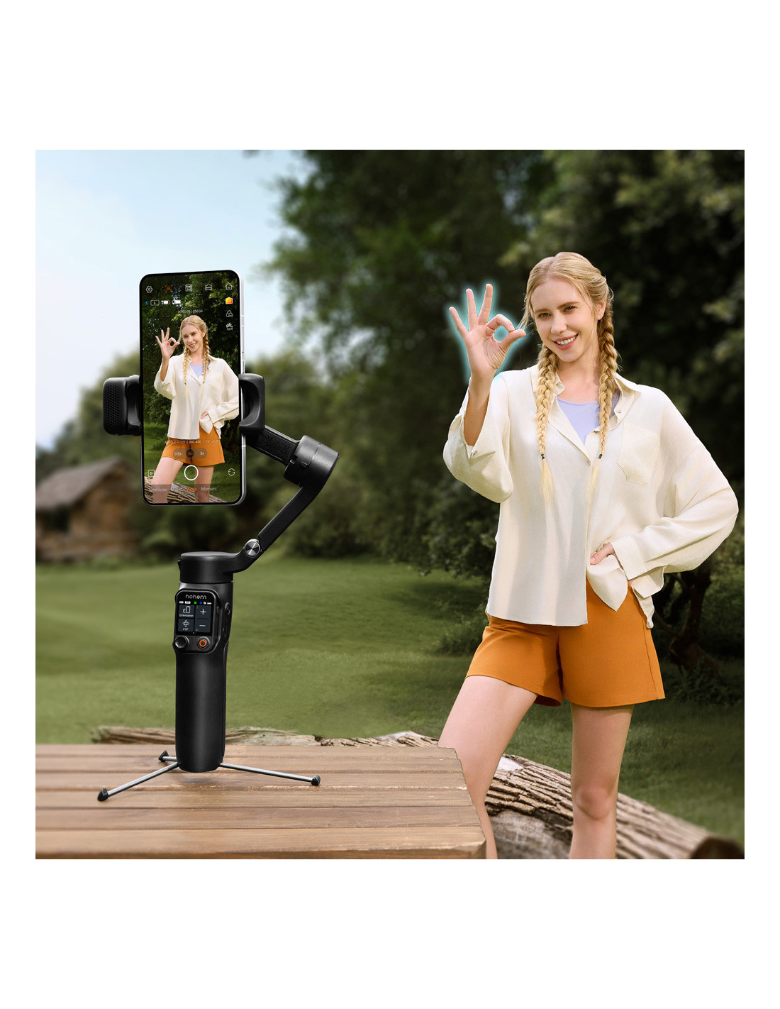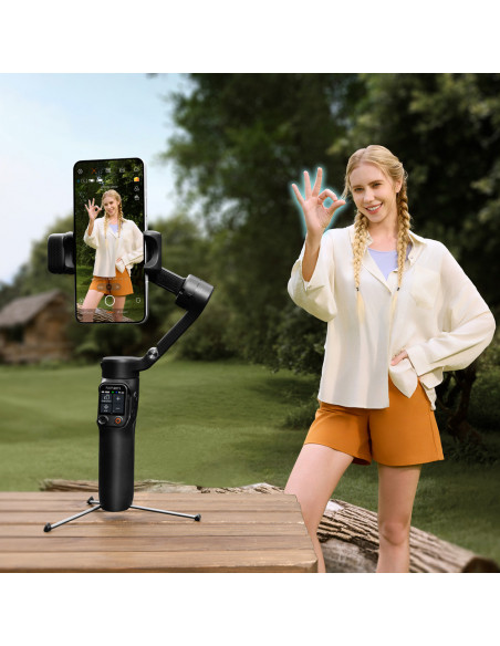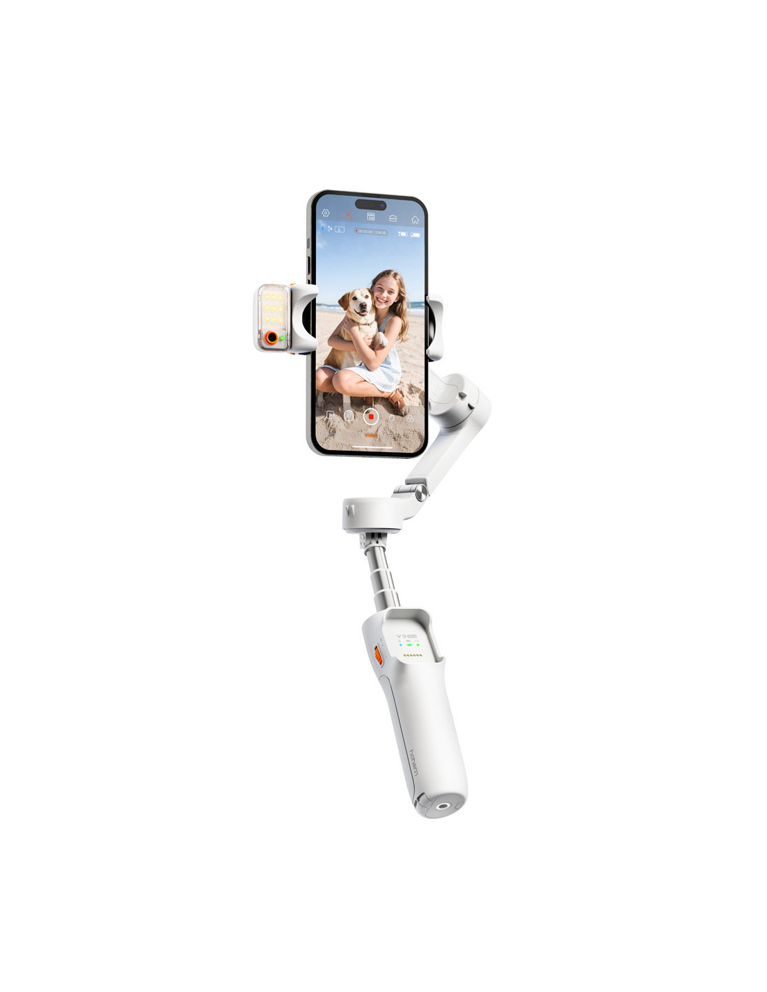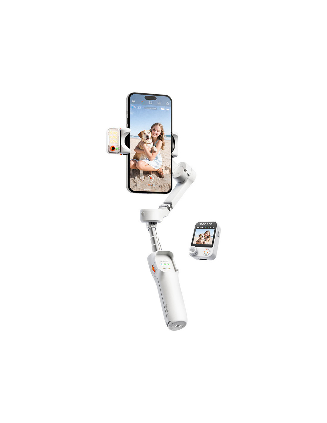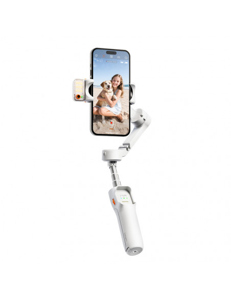 The all in one stabilisation solution The Hohem iSteady V3 Ultra White is a foldable 3 axis smartphone gimbal with powerful AI features and an intuitive touchscreen. Whether you're filming while travelling, vlogging or taking creative shots, your footage will remain smooth and stable. The smart AI tracking effortlessly follows people, animals or objects, and you can control everything hands free with gestures. Compatible with smartphones from 58â98 mm and up to 400 g, so you can always create freely. Highlights Multimodal AI tracker to follow people, animals and other objects. Integrated CCT light. 1.22" touchscreen remote control Built in extension and tripod Foldable 3 axis stabilisation Multimodal AI tracker The multimodal AI tracking module recognises people, animals and objects. Thanks to gesture control, you can easily start or stop tracking, activate the shutter and switch between horizontal and vertical mode. You can also adjust the composition without touching the screen. Combined with the wide control range of 360° pan, 195° to +135° roll and 35° to 45° tilt, every subject remains smoothly and accurately in view. Touchscreen and creative modes The 1.22 inch full colour touchscreen offers intuitive control, live feed monitoring and target selection. The âScenarioâ function allows you to automatically create panoramas, timelapses and creative rotations such as inception shots. All functions can also be controlled via the integrated touchscreen remote control with a range of up to 10 metres. Lighting and extras The CCT fill light gives you a choice of cool, neutral and warm colour temperatures, continuously dimmable and remotely controllable. For even more flexibility, the gimbal has a built in extension rod and tripod. Compact and powerful When folded, the iSteady V3 Ultra measures only 98 à 44 à 160.5 mm. The 1600 mAh battery lasts up to 9 hours and fully charges in 2.5 hours. The Hohem Joy app gives you access to additional creative tools and features., Foldable 3 axis stabilisation Control range: Pan: 360° infinite; Roll: 195° to +135%; Tilt: 35° to 45° Smartphone width: 58 98 mm Maximum load capacity: 400g AI tracking module: Multimodal AI tracker that tracks people, animals and other objects; Gesture based tracking system for people; Supports both automatic recognition and touchscreen target selection for accurate tracking of different objects Native camera tracking: âï¸ AI tracking in third party apps: âï¸ Gesture control: Start AI tracking; Stop AI tracking; Shutter control; Switch to landscape/portrait mode; Custom composition Touchscreen: 1.22 inch (3.1 cm) full colour touchscreen; Intuitive parameter setting, live feed monitoring and tracking target selection; âScenarioâ function: Automatic pan rotation, automatic roll rotation (inception), panorama, timelapse. Remote control: Touchscreen remote control, all functions on one remote control, operating distance of 10 m (32.8 ft) Fill light: CCT fill light; Cold/neutral/warm light temperature; Supports seamless dimming; Remote control for lighting Built in extension pole and tripod: âï¸ Folded dimensions: 98 x 44 x 160.5 mm Battery capacity: 1600 mAh Battery life: 9 hours Charging time: 2.5 hours Accompanying app: Hohem Joy , 1 x Hohem iSteady V3 Ultra 1 x Magnetic AI tracker with fill light 1 x Detachable remote control 1 x USB C charging cable 1 x Allen key 1 x Storage bag