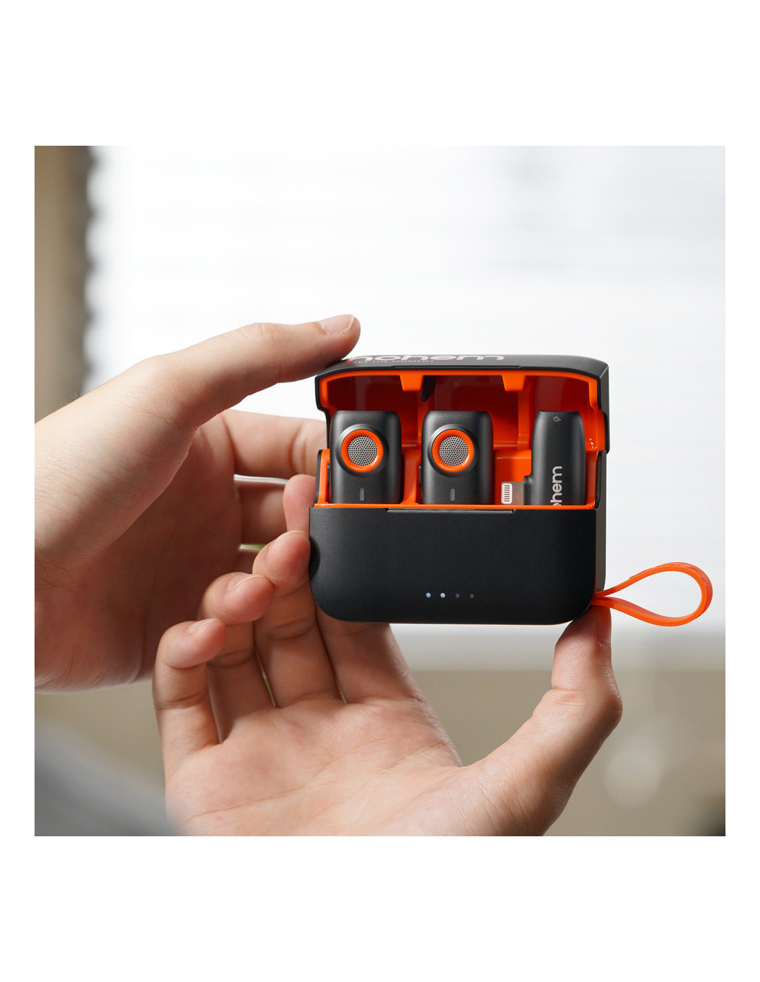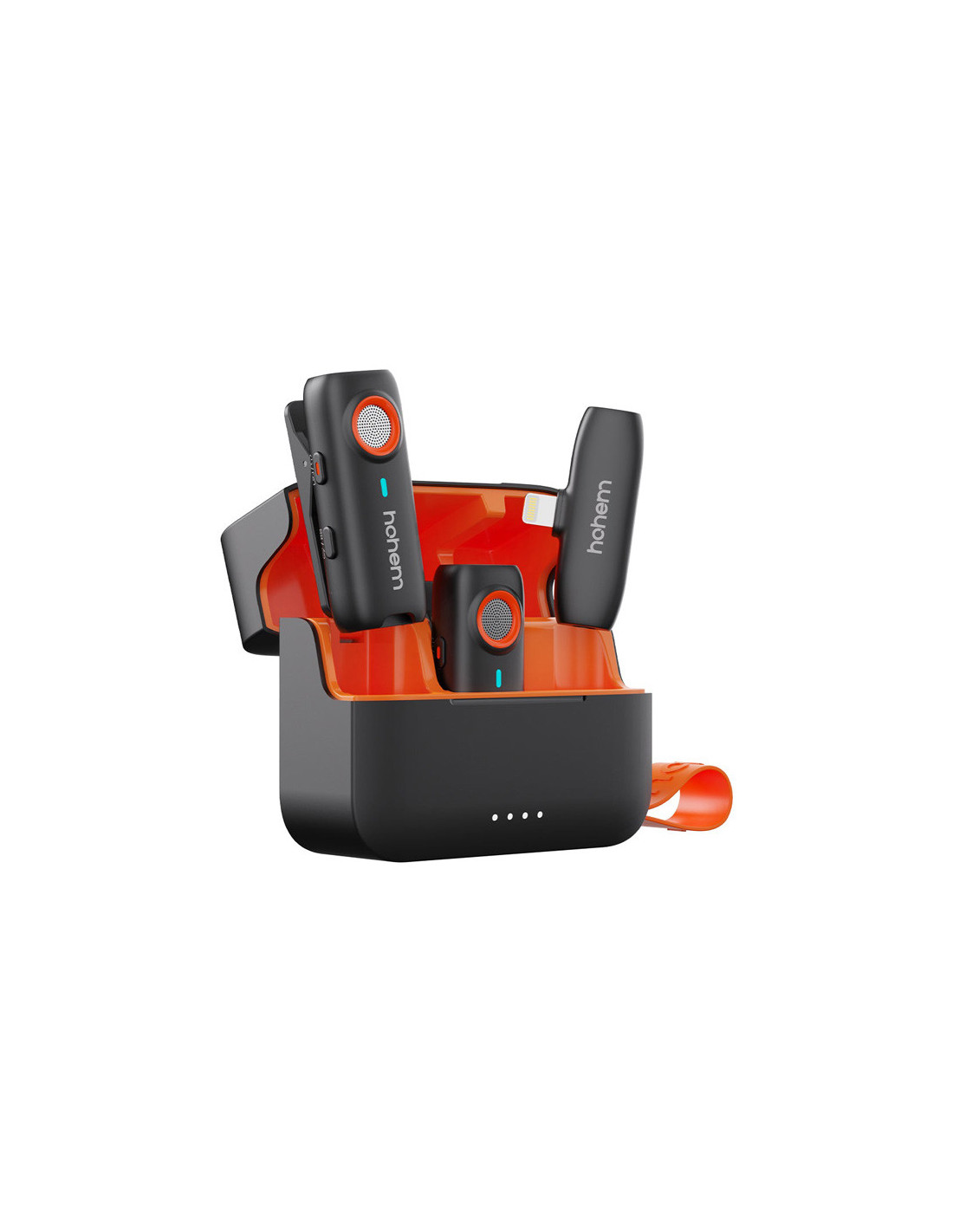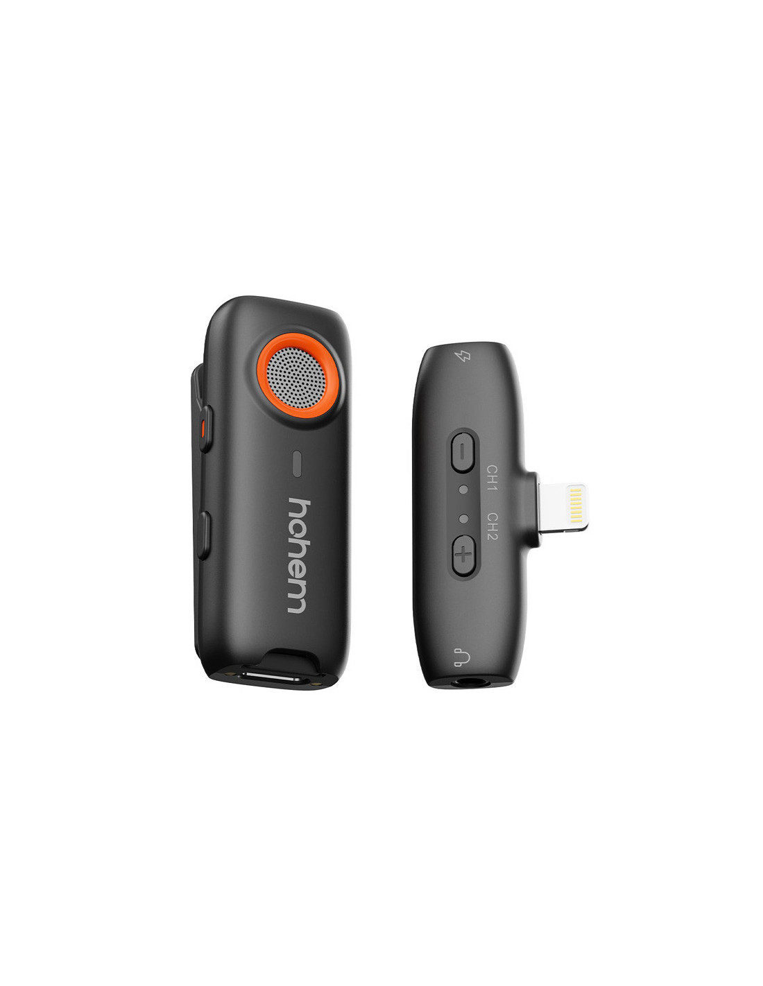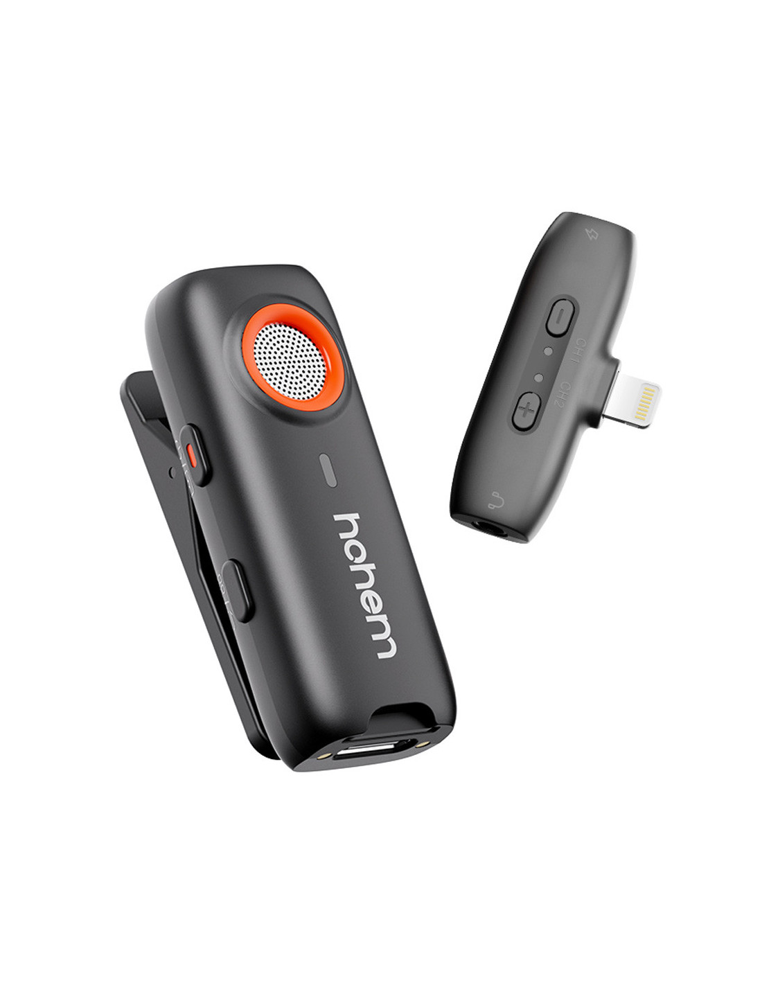 Adapt seamlessly to different creative environments Use the Hohem MIC 01 Wireless Lavalier Microphone (2TX + 1RX + Charging Case) and simply plug in the RX receiver to start recording, making it the ideal choice for videographers seeking versatility across multiple devices. The Hohem MIC 01 supports innovative shutter control for smartphones, allowing you to remotely control photography and video recording with your phone. The RX receiver has a lightning connector. Highlights Effortless shutter control & enhanced creativity Crystal clear sound in any environment Plug and play functionality Rear clip/magnetic attachment The compact and ultra light TX transmitter and RX receiver weigh less than 15g each. The transmitters can be attached via the rear clip or clip magnets. 360° Omnidirectional Pickup Simplify your shooting process with intuitive smartphone shutter control. Seamlessly capture moments and manage shots with a single click, giving you unprecedented creative freedom and control. The built in omnidirectional microphone captures sound from any direction, even when the TX transmitter is held upside down. Crystal clear sound in any environment With a sampling rate of 48 kHz and a depth of 16 bits, the Hohem MIC 01 delivers pristine digital audio while effectively eliminating background noise. Advanced DSP noise reduction technology offers three customisable modes for pristine audio in any environment. Choose from three different noise reduction settings for crystal clear recordings, even in demanding environments. Instant setup, limitless exploration Experience lightning fast installation with plug and play functionality. Get straight to work by plugging in the RX receiver and explore a world of uninterrupted creativity with built in storage for extensive recording possibilities. Seamless integration with Hohem Gimbal Designed for perfect compatibility with the Hohem Gimbal, the MIC 01 ensures synchronised stability and superior sound quality for a comprehensive audio visual experience. Built in storage for backup recordings Equipped with a TF card slot, the TX transmitter can be used for local audio backup. In addition, it also serves as a stand alone recorder. It supports TF cards with a capacity of 32 GB or less (FAT format) and can record continuously (FAT format) and can record up to 94 hours continuously. Note: TF storage card is not included., Charging case features (2TX+1RX) Dimensions: 80 x 64 x 30.6mm (carrying strap not included) Weight: 76g Input: DC4.8~5.4V Charging time: About 1.5 hours Capacity: 850mAh Transmitter & Receiver features Dimensions transmitter: 50.2 x 20.6 x 20.6mm Transmitter weight: 14.9g Receiver dimensions: 46 x 23.5 x 9.1mm Receiver weight: 5g Sampling frequency: 48KHz Audio transmission range: 65ft (20m) for free movement, 328ft (100m) for LOS Transmission frequency: 2.4GHz Output latency: 25ms Frequency range: 20Hz 20KHz Input voltage: DC4.8~5.4V Sensitivity: 38 dBFS SNR (signal to noise ratio) : 64 dB Operating temperature: 20 ~ 60 â ( 4 ~ 140 â ) Power: 170mW Battery Capacity: 150mAh Operating Time: 7.5hrs (Up to 20hrs with the Charging Case) Charging Time: about 1.5hrs Adaptation System: iOS , 1 x Charging Case 2 x Transmitter 1 x Receiver 1 x Type C Charging Cable 2 x Windscreen 1 x User Guide 1 x Quick Start Guide