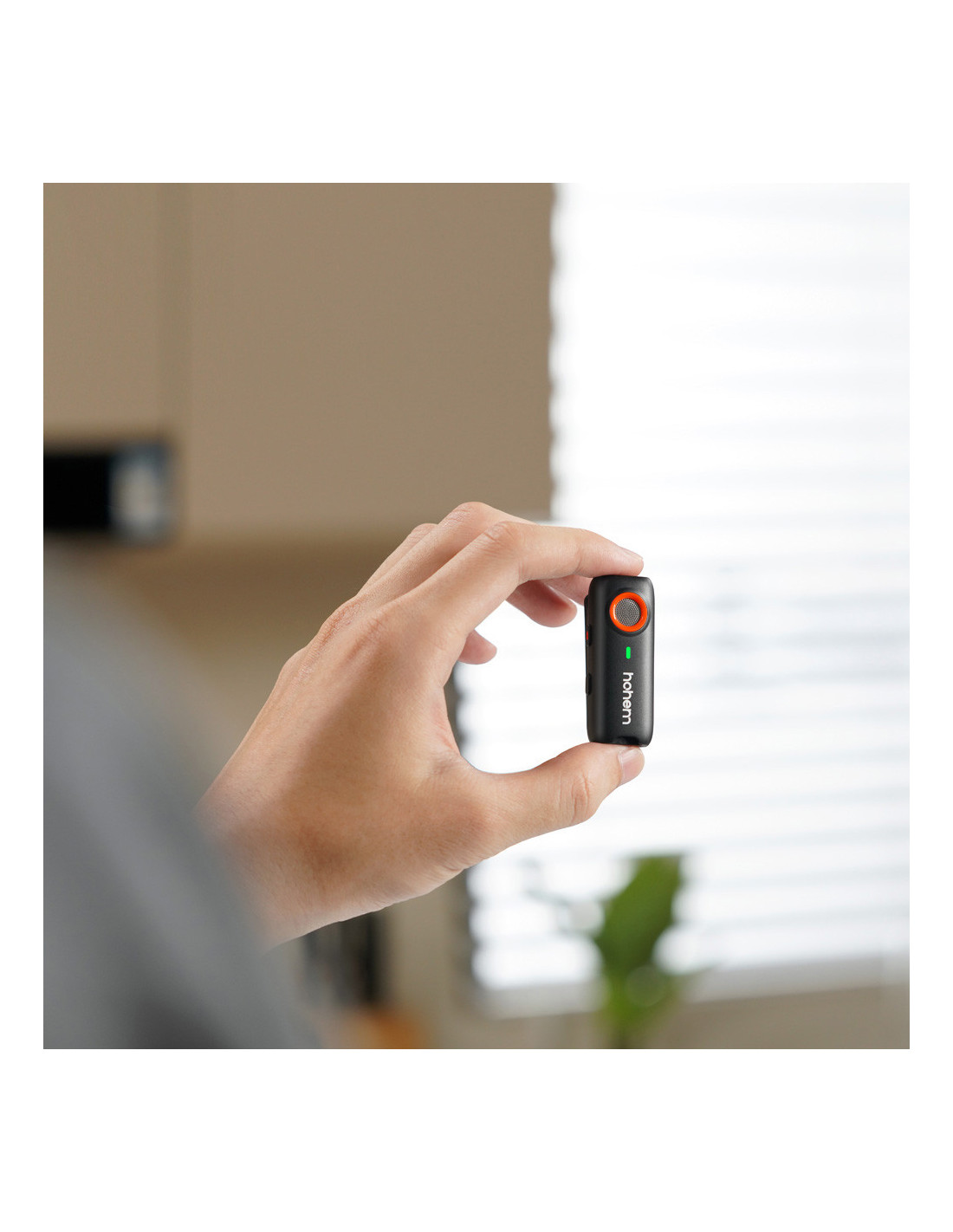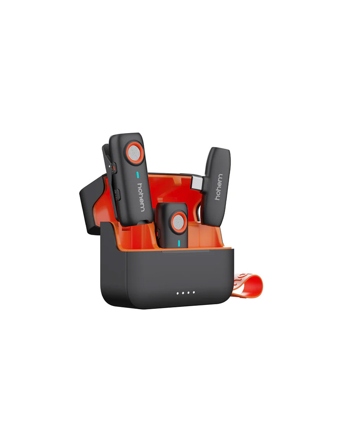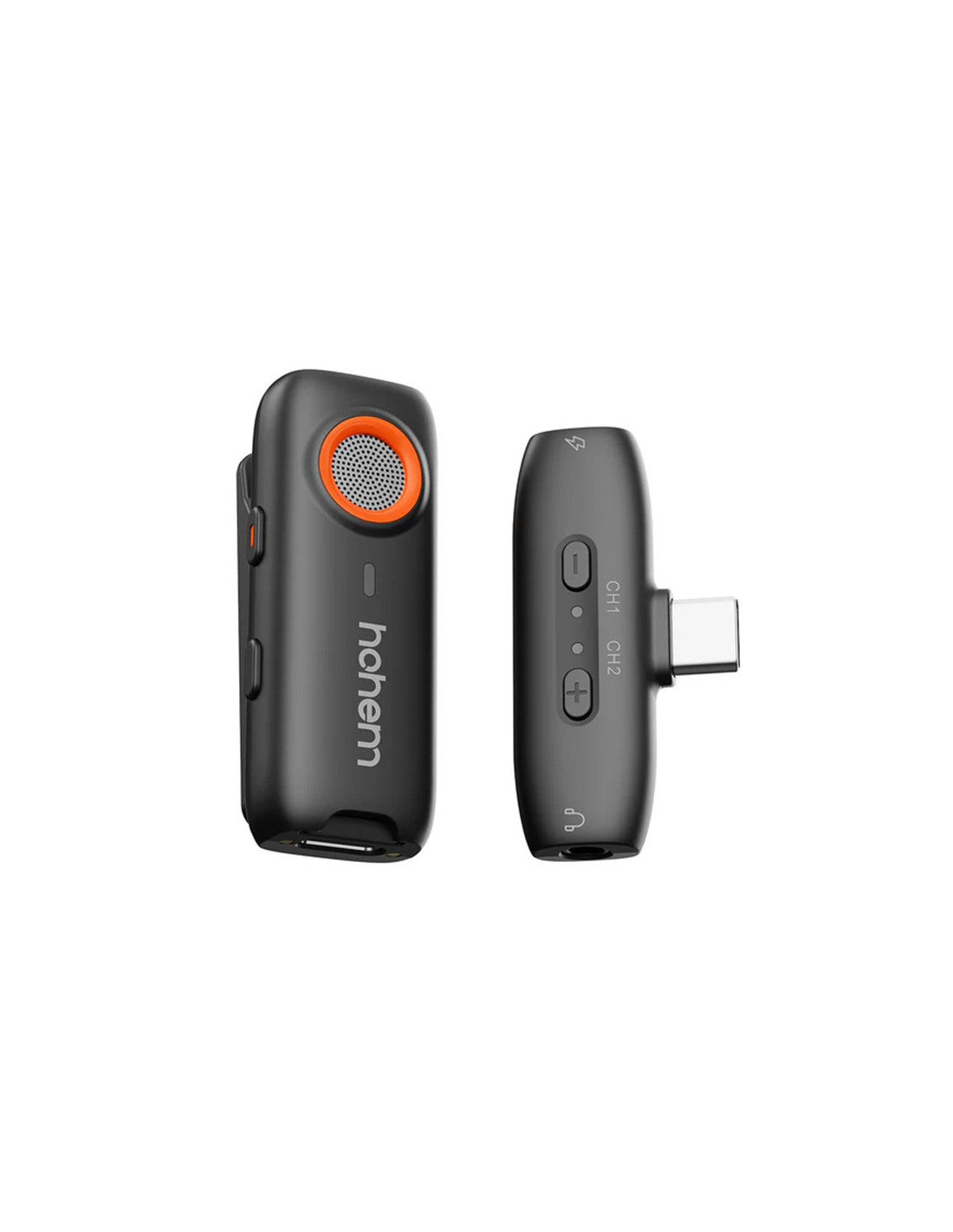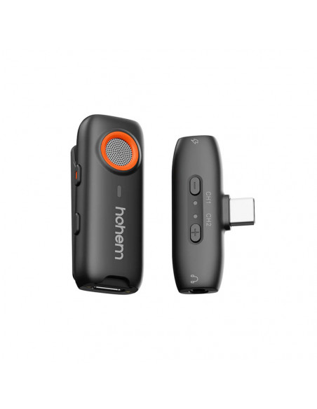 Adapt seamlessly to different creative environments Use the Hohem MIC 01 Wireless Lavalier Microphone, TYPE C (2TX+1RX+Charging Case) Black and simply plug in the RX receiver to start recording, making it the ideal choice for videographers seeking versatility across multiple devices. The Hohem MIC 01 supports innovative shutter control for smartphones, allowing you to remotely control photography and video recording with your phone. The RX receiver has a Type C connector. Highlights Effortless shutter control & enhanced creativity Crystal clear sound in any environment Plug and play functionality Rear clip/magnetic attachment The compact and ultra light TX transmitter and RX receiver weigh less than 15g each. The transmitters can be attached via the rear clip or clip magnets. 360° Omnidirectional Pickup Simplify your shooting process with intuitive smartphone shutter control. Seamlessly capture moments and manage shots with a single click, giving you unprecedented creative freedom and control. The built in omnidirectional microphone captures sound from any direction, even when the TX transmitter is held upside down. Crystal clear sound in any environment With a sampling rate of 48 kHz and a depth of 16 bits, the Hohem MIC 01 delivers pristine digital audio while effectively eliminating background noise. Advanced DSP noise reduction technology offers three customisable modes for pristine audio in any environment. Choose from three different noise reduction settings for crystal clear recordings, even in demanding environments. Instant setup, limitless exploration Experience lightning fast installation with plug and play functionality. Get straight to work by plugging in the RX receiver and explore a world of uninterrupted creativity with built in storage for extensive recording possibilities. Seamless integration with Hohem Gimbal Designed for perfect compatibility with the Hohem Gimbal, the MIC 01 ensures synchronised stability and superior sound quality for a comprehensive audio visual experience. Built in storage for backup recordings Equipped with a TF card slot, the TX transmitter can be used for local audio backup. In addition, it also serves as a stand alone recorder. It supports TF cards with a capacity of 32 GB or less (FAT format) and can record continuously (FAT format) and can record up to 94 hours continuously. Note: TF storage card is not included. , Charging case features (2TX+1RX) Dimensions: 80 x 64 x 30.6mm (carrying strap not included) Weight: 76g Input: DC4.8~5.4V Charging time: About 1.5 hours Capacity: 850mAh Transmitter & Receiver features Dimensions transmitter: 50.2 x 20.6 x 20.6mm Transmitter weight: 14.9g Receiver dimensions: 46 x 23.5 x 9.1mm Receiver weight: 5g Sampling frequency: 48KHz Audio transmission range: 65ft (20m) for free movement, 328ft (100m) for LOS Transmission frequency: 2.4GHz Output latency: 25ms Frequency range: 20Hz 20KHz Input voltage: DC4.8~5.4V Sensitivity: 38 dBFS SNR (signal to noise ratio) : 64 dB Operating temperature: 20 ~ 60 â ( 4 ~ 140 â ) Power: 170mW Battery Capacity: 150mAh Operating Time: 7.5hrs (Up to 20hrs with the Charging Case) Charging Time: about 1.5hrs Adaptation System: iOS , 1 x Charging Case 2 x Transmitter 1 x Receiver 1 x Type C Charging Cable 2 x Windscreen 1 x User Guide 1 x Quick Start Guide