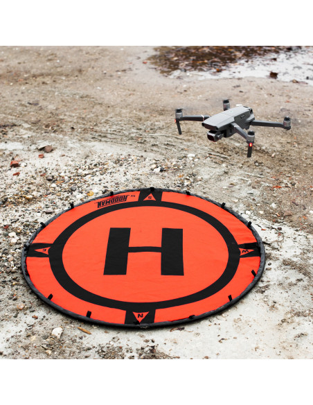 The Hoodman Launch Pad is an easy to install landing and take off pad for drones, quadcopters, multirotors, helicopters and other flying objects. The zinc coated cable keeps the polyester launch pad in place, so you don't have to use pegs. Thanks to the bright orange color with clear black markings, you can land the drone in the right place without any problems.