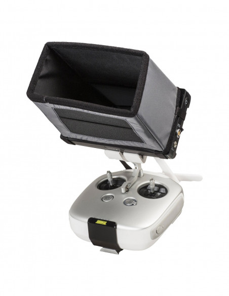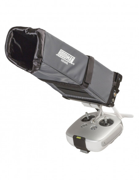 The Hoodman Shogun kit for 7 inch (17.7 cm) FPV monitors provides optimal protection against unwanted incident light. This means you always have a perfect view without glare. The set consists of a lens hood and an extension. The lower part has a unique feed through for touchscreen operation. The two adjustable straps make mounting the hood quick and easy. A horizontal security strap prevents the lens hood from tipping forward. The extension can be mounted on the lens hood. This is ideal for filming and shooting with your drone when you need a slightly greater distance from the image. This gives you a freer view of the monitor times