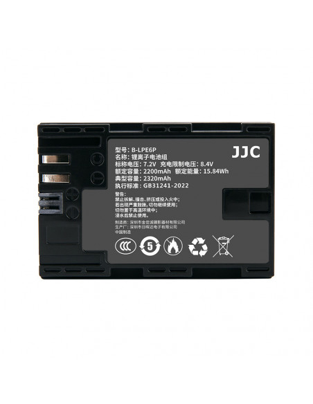 Li ion Battery Pack JJC Li ion Battery Pack works the same as the original battery being replaced. The battery fits and works perfectly with the respective cameras. JJC li ion battery is manufactured by high quality battery core, has the advantages of sufficient electricity, long duration, long life. Strict quality control technology is used for each battery and 72 hours aging test to ensure that each battery is safe and reliable. Highlights Replacement for original batteries High quality and durable 72 hour ageing test to ensure each battery is safe and reliable Can be charged or discharged at any time without developing memory effect Protection against overcharging, overcurrent and short circuiting High quality Li ion chemistry allows you to charge the battery as much or as little as you need, without memory effect. Each battery comes with a water resistant battery case so you can store the battery when not in use. This way, the battery's contacts stay away from dust and moisture, extending its life. It meets the relative certificates of the qualified CNAS/CMA lab. Certified by 3C, safe and reliable., Model: JJC B LPE6P Weight: 79 grams Dimensions: 5.66 x 3.81 x 2.11 cm Material: ABS Colour: Black Rated voltage: 7.2V Maximum voltage: 8.4V Rated capacity: 2200mAh Typical capacity: 2320mAh 2 year warranty , 1 x JJC B LPE6P Li ion Battery Pack