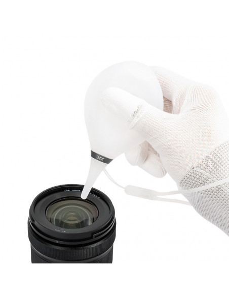 Blow everything clean safely The JJC CL ARSW CR Air Blower safely blows clean air to remove dust from sensitive or hard to reach surfaces, such as cameras, lenses, filters, LCD screens, keyboards and precision instruments. Highlights Safely blows clean air to remove dust from sensitive surfaces Effectively cleans hard to reach areas Made from premium silicone Scratch resistant soft silicone air nozzle 36 mm long Two one way valves at the bottom Premium silicone material It is made of premium silicone material that rebounds almost instantly for a continuous flow of clean air. The soft silicone air nozzle is scratch resistant and is 36 mm/1.42ââ long. It makes it easy to clean hard to reach areas. Two one way valves at the bottom bring clean air quickly and do not spread dust. Moreover, there is an aluminium ring between the nozzle and silicone bulb for a silicone cord. The lanyard makes it easy to hold and hang up for storage., Material: silicone Colour: white Weight: 46 g Dimensions: â6 x 13 x 6 cm 2 year warranty , 1 x Air Blower 1 x Silicone cord