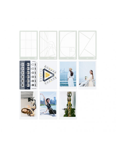 Composition Viewfinder Set The JJC GR K6 Composition Viewfinder Set helps users explore shooting scenes from different angles, inspires creativity and helps beginners master composition techniques. Made of high quality PC material, the cards offer high transparency and durability. Place them on the screen of your camera or phone or compare them directly with the scene to choose the best shooting angle based on the lines provided. Highlights Designed for photography composition Easy to use Set includes 4 composition cards and accompanying sample cards Comes with ND filter, shutter speed reference card and exposure triangle card Rule of Thirds card Commonly used in landscape and portrait photography. In landscapes, place the sky and horizon at the intersections for more balance and depth. In portraits, place the most important parts of the subject at the intersections to avoid stiffness. Golden Section map Suitable for floral, architectural and food photography. Place the subject or decorative elements on the golden section to enhance visual appeal and create harmony with other elements. Leading lines map Used for photographing roads, rivers and interiors. Use lines in the frame to direct the viewer's attention to important elements. Fibonacci Spiral Card Ideal for portraits, animals and abstract photography. Place striking colours or shapes near the focal point of the spiral for a unique visual effect. It also includes an ND filter shutter speed reference chart and an exposure triangle chart. The ND map helps you quickly determine the right shutter speed for sharp photos when using an ND filter. The exposure triangle card helps you understand the relationship between aperture, shutter speed and ISO, so you can create optimal exposure combinations. The set comes with a card holder for easy organisation and portability., Model: JJC GR K6 Weight: 66 g Composition Cards: 850.9 x 541.0 x 0.08 cm ND Shutter Speed Reference Card / Exposure Triangle Card: 8.51 x 5.41 x 0.05 cm Composition Example Cards: 850.9 x 541.0 cm 2 year warranty , 4 x Composition Cards 5 x Composition Example Cards 1 x ND filter reference card shutter speed 1 x Exposure triangle card