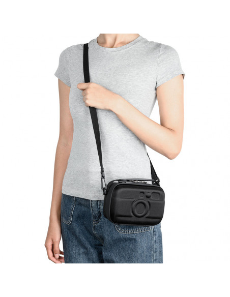 Protects your instant camera The JJC HSCC IME BLACK Camera Case is specially designed for instant cameras such as the FUJI. Instax series, LEI. SOFORT series, Koda. Mini Shot series, as well as compact cameras such as the FUJI. X100 series and SON. ZV E1 series. Inside, there is an elastic Velcro strap to hold the camera, making it more secure and reducing vibrations. The top cover contains a mesh pocket for storing items such as film paper, cleaning sticks and charging cables. Elastic straps on both sides of the interior connect the top and bottom lids, preventing the lid from opening too far and items from falling out. Highlights Wear as a crossbody or single shoulder Elastic Velcro interior to keep camera stable Mesh pocket in the top lid for storing accessories Elastic straps connect top and bottom flap Made of high quality EVA plastic High quality The case is made of high quality EVA material, ensuring durability and dust and splash proof performance. The reinforced rib design on the surface effectively reduces the impact of vibrations and collisions. The zip can be opened in two directions for easier access. The widened handle helps distribute pressure on the hands, preventing fatigue even during prolonged carrying. Wear as a crossbody or single shoulder Moreover, the bag features an adjustable shoulder strap (73 133 cm), which allows both crossbody and single shoulder carry, leaving your hands free for a more relaxed and convenient trip., Material: EVA Colour: black Weight: 179 g Dimensions: 17 x 12 x 9.50 cm 2 year warranty , 1 x Camera bag 1 x Shoulder strap , FUJI. instax mini Evo / instax mini LiPlay FUJI. X100F / X100V / X100VI LEI. SOFORT / LEI. SOFORT 2 Koda. Mini Shot 2 Retro SON. ZV E10 camera body+SEL35F28Z lens / SELP1650 lens / SEL24F28G lens SON. a6700 camera body+SEL35F28Z lens / SEL24F28G lens SON. DSC HX1 / DSC H200 Panasoni. Lumix S9 camera body+S R26 lens Panasoni. Lumix GF1 Camera Body+G X Vario PZ 14 42mm f/3.5 5.6 Power O.I.S. Lens Panasoni. DC G100D Camera Body+Lumix G Vario 12 32mm f/3.5 5.6 ASPH. Lens Panasoni. DC G100 Camera Body+Lumix G Vario 12 32mm f/3.5 5.6 ASPH. Lens CAN. PowerShot V10 / PowerShot G1 X Mark III / PowerShot G7X Mark II / PowerShot SX520 HS / PowerShot SX410 IS. Note: Listed above is only a number, please check your device's dimensions for more compatibility.