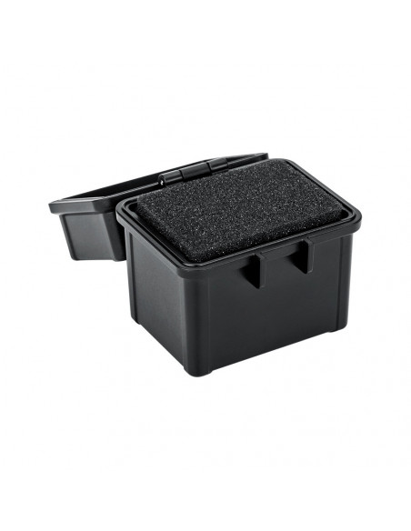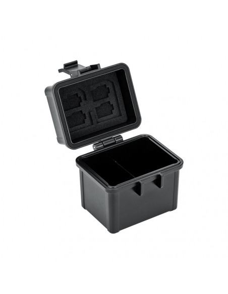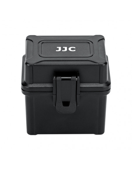 Safely store lithium batteries and memory cards Meet the JJC JBC BAT2 Battery and memory card storage box, your reliable companion for safely storing essential accessories on the go. Accommodating 2 lithium batteries, 2 SD card and 4 micro SD cards, this compact case is a versatile storage solution for your photo or video gear (batteries and memory cards not included). Highlights Safely stores lithium batteries and memory cards Made of durable, eco friendly ABS plastic Features splash and dust proof silicone sealing ring Robust and environmentally friendly Made of premium ABS plastic, known for its robustness and environmental friendliness, this storage box is exceptionally pressure and shock resistant, making it long lasting even in demanding environments. The sealing ring of the storage box's opening is made of high quality silicone, making the box splash and dust proof. In addition, the ergonomic switch design ensures easy access, while the independent card slots on the lid maximise storage efficiency. Safe and protected Inside, EVA sponge pads provide a secure hold and unrivalled shock absorption, protecting your batteries and memory cards from damage. The upper horizontal sponge fits 6 memory cards and the lower vertical slots fit 2 camera batteries, each measuring up to 41 x 28 x 54 mm. The innovative design keeps batteries and memory cards stable and separated, preventing scratches and ensuring safety during storage. Experience seamless organisation and easy access to your accessories wherever you go., Weight: 57 g Dimensions: 7.01 x 6.71 x 6.71 cm Material: ABS+EVA+Solicone Ergonomic switch design facilitates access Specially shaped EVA sponge pads for safe and shockproof storage 2 year warranty , 1 x JJC JBC BAT2 Battery and memory card storage box 3 x sponge
