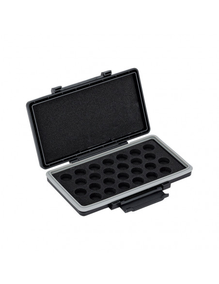 Coin Cell Battery Storage Box The JJC JCR CR1X26 Coin Cell Battery Storage Box is specially designed to safely store and protect CR1/3N button cell batteries. This compact and durable storage system offers a reliable solution for anyone who wants to keep their batteries organised and protected. Highlights Compatible with CR1/3N model button batteries Holds up to 26 batteries Silicone seal for dry interior Grid design neatly separates batteries Ergonomic locking system Strong and eco friendly design The box is made of high quality and eco friendly ABS plastic, making it sturdy and durable. Despite its robust construction, the design remains slim and compact, making it easy to carry or store. Protection against moisture, water and dust A silicone sealing ring around the box provides excellent protection against moisture, water and dust. This keeps your batteries in optimal condition, whatever the conditions. Shockproof interior The inside features custom made EVA foam that effectively helps reduce damage from vibration and shock. Batteries are held firmly in place, preventing them from colliding or scratching. Smart and practical design The grid design keeps batteries organised and easily accessible. It prevents contact between the batteries, which not only provides protection, but also enables orderly storage. Moreover, the ergonomic locking system makes opening and closing the box easy and safe., Model: JJC JCR CR1X26 Weight: 60g Material: ABS + EVA + Silicone 2 years warranty