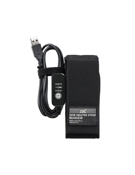 Dew Heater Strip The JJC JDHS 1 Dew Heater Strip is specially designed for camera lenses and telescopes. It prevents condensation by heating the lens on a camera or telescope. It fits lenses with an outer diameter of up to 8 centimetres. Highlights Specially designed for lenses and telescopes Prevents condensation by preheating the lens or telescope Fits lenses with an outer diameter of up to 8 centimetres Three heating settings: low, medium and high Velcro strap for quick and easy attachment and removal Easy to use Made of high quality material, the JJC JDHS 1 Dew Heater Strip transfers heat quickly and retains it well too. It runs on an external USB power supply, which is convenient for use on location. Moreover, the strip is quick and easy to attach and remove thanks to its Velcro closure., Model: JDHS 1 Weight: 77 g Outside diameter of up to 8 centimetres Cable length of approximately 1.5 metres Supply voltage DC 5V 2A Operates on an external USB power supply 2 year warranty , 1 x Dew Heater Strip 1 x Storage pouch 1 x User guide