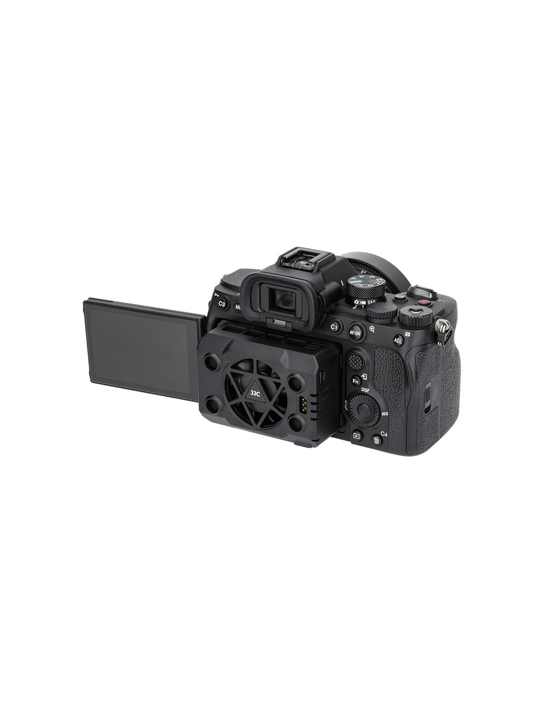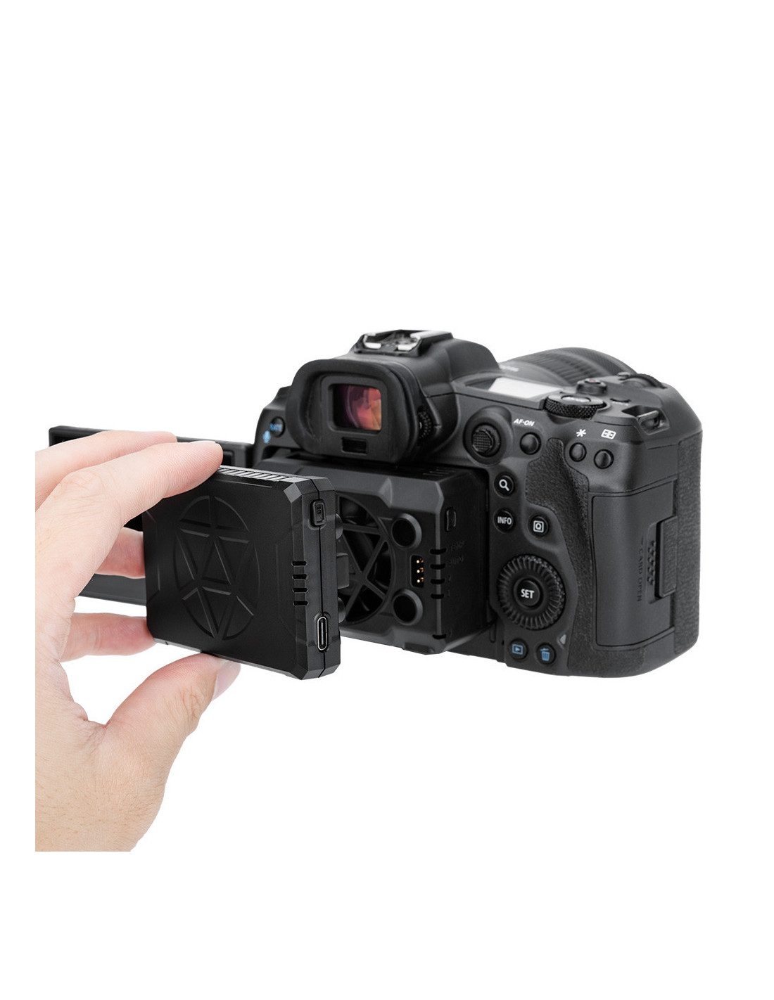 The cooler features a highly efficient semiconductor heat dissipation structure, combined with a powerful fan and an aluminium heat conduction plate to quickly dissipate heat from the camera. It helps prevent problems such as image quality deterioration, automatic shutdown or shorter battery life due to overheating.