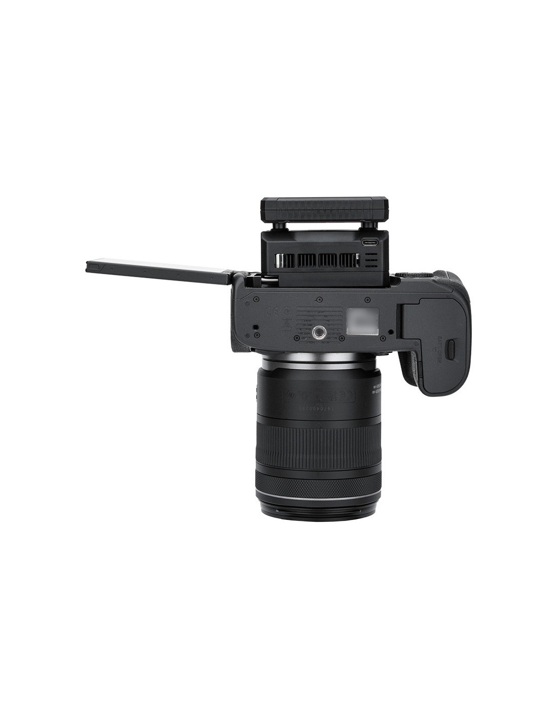 Thanks to its long battery life, it supports extended recording sessions. Installation is simple: insert the spring loaded lock into the opening between the tilt screen hinge and the camera body to hold it securely in place. It is compatible with cameras whose LCD screen slot dimensions fall within the following range: Slot length: 75–94 mm and slot width: ≥53 mm.