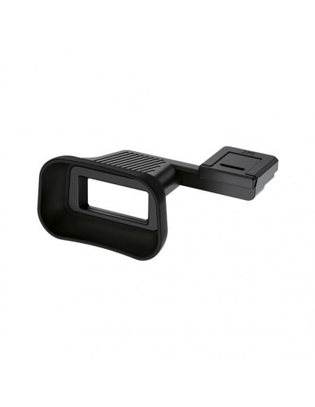 Det kan installeres uden værktøj og er sikkert fastgjort via et dias på flash sko mount, giver mulighed for hurtig enhåndet fastgørelse og fjernelse. Den udvidede og udvidede kontur forhindrer næsen i at komme i kontakt med LCD screen, så selv brugere med en høj næse bro kan arbejde komfortabelt under lange skyde sessioner uden distraktion.