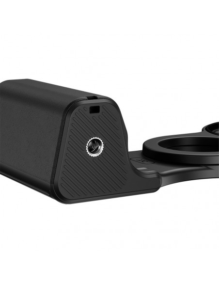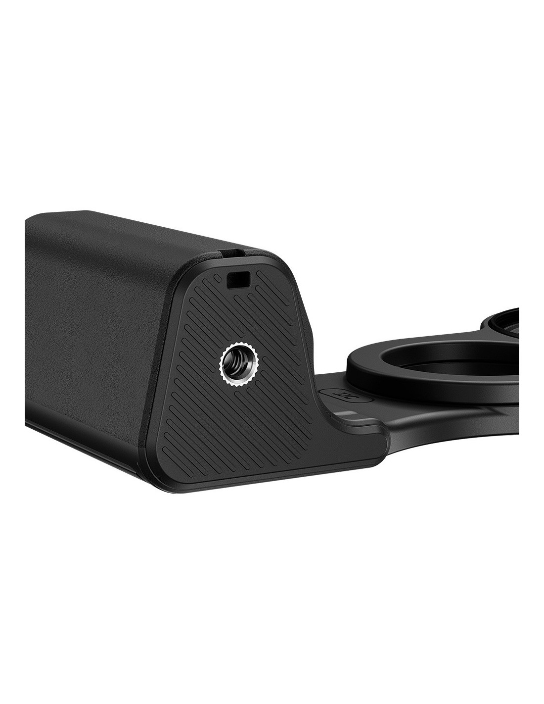 The plate is equipped with 16 strong magnets and ensures reliable attachment of the phone. The contact surface between the grip and the phone is largely covered with silicone, effectively preventing scratches from prolonged use. A 1/4" 20 screw hole on the bottom allows for attachment to a tripod, and a cord hole supports the use of the included wrist strap for safer outdoor carrying.
