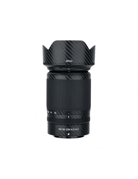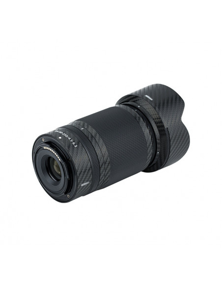 Anti scratch protective film specially designed for the Nikon NIKKOR Z DX 50 250mm f / 4.5 6.3 VR Lens. In the color: Carbon Fiber Black.