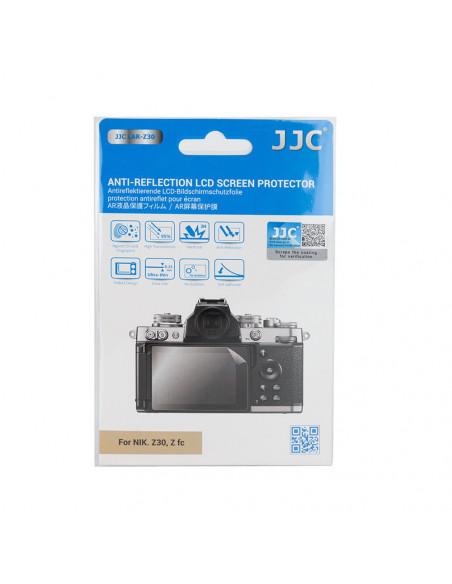 Protect your screen The JJC LAR Z30 Anti Reflection LCD Screen Protector is tailored to fit the LCD screen of any camera and is only 0.15 mm thick. It protects the camera screen without affecting the folding and unfolding of the screen. Highlights Only 0.15 mm thick, with no effect on screen folding and unfolding Low reflective nano coating effectively reduces glare Scratch resistant coating prevents screen scratches The protector distinguishes itself from traditional tempered glass protectors with its low reflective nano coating that effectively reduces screen glare; high light transmission of up to 95% ensures a clear and vivid screen display; scratch resistant coating to prevent scratch damage. It has an anti fingerprint coating that minimizes the build up of fingerprints and smudges and is water and oil resistant. , Material: PET Light transmittance: 95% Hardness: 3 H 2 years warranty , 1 x Protective film 1 x Wet Cleaning Cloth 1 x Microfiber cleaning cloth