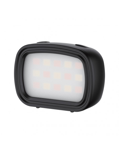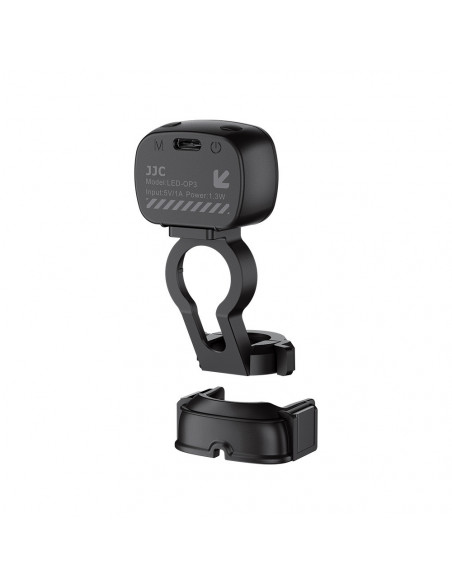 Mini LED lighting The JJC LED OP3 Mini LED lamp is specially designed for the DJ. Osmo Pocket 3. The LED lamp has a magnetic design and can be easily attached. Highlights Specially designed for the DJ. Osmo Pocket 3 Magnetic design for quick attachment Built in 15 high quality LEDs provide soft, even lighting to improve image quality Easy attachment It includes two custom made mounting clips, which can be attached separately to the gimbal and camera body of the Pocket 3, providing three magnetic attachment points for flexible lighting from multiple angles. The clips are made of lightweight ABS material and do not interfere with the movement of the gimbal or the rotation of the screen. Soft and even light With 15 built in LEDs, the lamp provides soft, even lighting, while a high CRI of 95+ ensures accurate colour reproduction. The LED lamp offers three professional colour temperature modes: warm light (3000K±200K), warm white light (4500K±200K) and white light (6500K±200K), with corresponding brightness levels of 70Lux, 75Lux and 80Lux at 0.5 metres. Whether you want to create a cosy atmosphere, achieve a natural tone or capture lifelike colours, the LED OP3 easily adapts to your lighting needs. Easy operation Operation is simple, with just two buttons: the on/off button controls switching on and off and changing the colour temperature, while the M button adjusts the brightness in three levels. The built in 200 mAh battery is rechargeable via the included USB charging cable., Built in battery: 200 mAh Output power: 1.3 W Input: USB C, 5 V/1 A Charging time: approximately 1 hour CRI (colour rendering index): â¥95 LED lights: 15 pieces Battery life: >1.5 hours (at maximum brightness) Illuminance/colour temperature Warm light: 0.5 m/70 lux, 3000 K ± 200 K Warm white light: 0.5 m/75 lux, 4500 K ± 200 K White light: 0.5 m/80 lux, 6500 K ± 200 K 2 year warranty , 1 x LED lamp 2 x Mounting clips 1 x Data cable 1 x Storage bag 1 x Installation instructions
