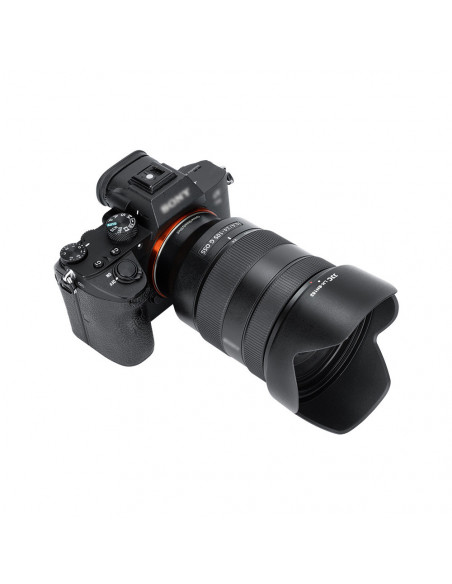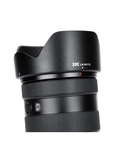 Prevent unwanted stray light The JJC LH SH152 Sony lens hood is designed for the Sony ALC SH152. The lens hood helps to prevent unwanted stray light and reduce lens flare. Highlights Specially designed for the Sony FE 24 105 mm F4 G OSS lens (MFR#SEL24105G/2) Blocks stray light entering the lens No vignetting occurs with the lens hood attached No dark corners When using this lens hood, there are no dark corners and the use of 77 mm filters and lens caps is not affected. In addition, the extended end of the lens effectively prevents excess stray light from entering the lens. Protection The extended end of the lens provides extra protection for the lens to prevent accidental knocks. Ease of use The lens hood can be reversed to save storage space, making it easier to carry. It is made of ABS material, making it sturdy and durable., For Sony FE 24 105 mm F4 G OSS lens (MFR#SEL24105G/2) Replaces Sony ALC SH152 Blocks stray light entering the lens Protects the lens from impact Reversible for compact storage Allows a Ф77 mm filter and lens cap to be attached A non reflective matte finish prevents reflections No vignetting occurs when the lens hood is attached 2 year warranty