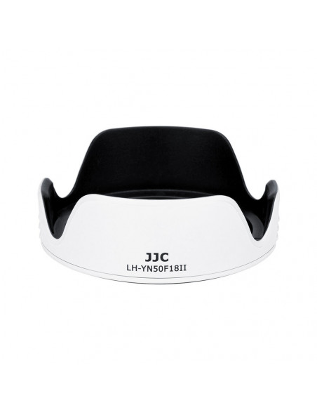 Yongnuo Lenshood The JJC LH YN50F18II WHITE Lens Hood is specially designed for Yongnuu YN 50mm f/1.8 II lens and consists of an adapter ring (Ф58mm) and a lens hood. This lens hood is designed to block unwanted side light. Highlights Specially designed for the Yongnu YN 50mm f/1.8 II Lens Blocks stray light Reversible for easy storage The inside of the lens hood has a matte finish that does not reflect, reducing lens flare. The JJC lens hood does not cause vignetting. In addition, the lens hood can be placed upside down over the lens for more compact storage convenience. The YN50F18II allows the use of a Ф58mm filter and a Ф58mm lens cap. The extended end of the JJC lens hood also provides additional protection against unintended impact., Matte non reflective finish Prevents vignetting Suitable for Ф58mm filter and lens cap Additional protection against impacts 2 year warranty