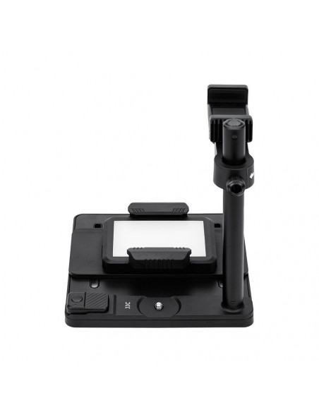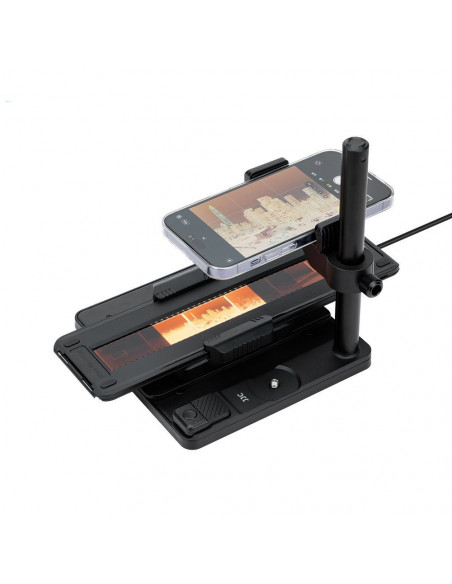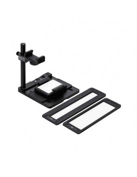Turn your physical photos and beautiful digital photo If you have found an old photo roll and would like to digitise it quickly, easily and reliably, JJC has the JJC MFN K1 Mobile Film Digitising Adapter Set. You place your phone in the phone holder and slide the 35 mm or 120 mm film strip into the included film holder. The LED panel with 11 brightness levels lets you perfectly illuminate your photo. Highlights Phone holder adjustable between 55 and 90 mm LED panel with 11 brightness levels Detachable Bluetooth Remote Control Film holder for 35 mm and 120 mm photos Phone holder Because the phone holder features a spring loaded stretch design, you can take stable photos without having to keep moving. It is convenient and easy to adjust for quick grip and release. It is suitable for smartphones from a wide range with a width of 55 90 mm. Moreover, the clamp holder supports vertical movement on the adjustment rod to meet the different macro focal lengths of smartphones. The adjustment rod is made of high quality metal, for years of reliable use without distortion. LED panel backlight The LED panel serves as a backlight when shooting your negatives and slides and can be easily attached to the slide rail of the base plate. This allows you to adjust the position of the LED panel in both X and Y directions, so it can be perfectly positioned under your smartphone's camera. The LED panel has 11 brightness levels and emits even light with a daylight colour temperature. You can easily power the LED panel via the included 1.5 metre USB cable, which can be connected to a standard USB connector (AC adapter not included). Detachable remote control The detachable wireless remote control allows you to effortlessly take photos without touching your smartphone. It is widely compatible with most smartphones of both iOS and Android systems. No need to download apps. And you can easily connect it to your smartphone. The remote is powered by a low power CR2025 battery, making it last longer. You can also use it to take selfies, long distance shots or group shots from a distance of up to 3 metres. Film holder The included 35mm and 120mm film holders are made of high quality and eco friendly ABS plastic material, which is sturdy and allows for years of reliable use. Each holder features a transparent mask that can significantly flatten the film and improve the clarity of the image. The opening of the film holder has a magnetic design, making it easy to open and close. Moreover, the holders also support scanning with a standard flatbed scanner with a backlight/transparency unit. The bottom of the film holder features high quality silicone pads that are non slip and protect the scanning plate from scratches. Strong and durable The base of the set is made of heavy duty metal, which is sturdy and durable and prevents it from tipping over during use. The non slip silicone pads on the bottom provide more stability and protect your table top from scratches. And the base comes with a flat head for convenient attaching and detaching. In addition, the base features a 1/4" 20 screw for attaching the JJC dedicated Selfie Stick (sold separately) for camera photography., Re photograph 35mm or 120 film with your smartphone Compatible with smartphones with a width of 2.2 3.5"/ 55 90mm Adjustable phone clip holder supports vertical movement Movable film holder, panel and slide rail Illuminated panel with eleven adjustable brightness levels for optimal illumination. Heavy metal base prevents tipping Bottom is fitted with non slip silicone pads Wireless remote control LED panel with adjustable position in both X and Y directions 11 brightness levels and daylight colour temperature Power supply via supplied 1.5 metre USB cable Warranty 2 years , 1 x Mobile Film Digitisation Adapter 1 x Detachable Wireless Remote Control 1 x CR2025 battery 1 x 35mm Film Holder 1 x 120 Film Holder 1 x 1.5M Type C cable 1 x User guide