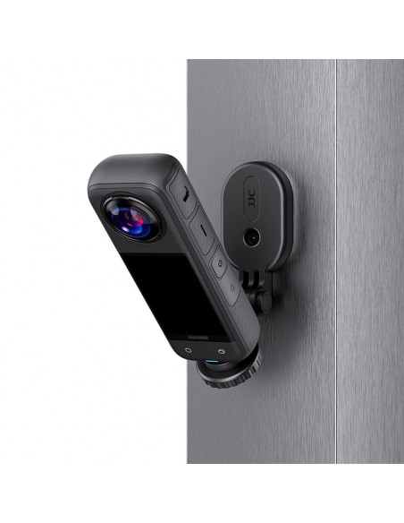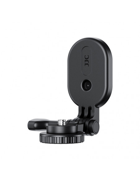 Magnetic Mount Stand The JJC MG AC1 Magnetic Mount Stand for Action Camera is specially designed for action cameras such as the Insta360 X4/X3/X2, DJI Osmo Pocket 3 or Action 5 Pro/4/3/2, GoPro Hero series, Insta360 ACE series and more. The device can be securely attached to various flat iron or stainless steel surfaces, such as vehicle bodies, iron frames, handrails, table legs, fridge doors and more, unlocking creative shooting angles. Equipped with 7 powerful magnets with a holding power of up to 1.1 kg, the silicone pad on the back provides a better grip, a firmer attachment and prevents scratches on attached surfaces. Highlights Can be used both as a desktop stand and as a handle 1/4" 20 screw and 3 way action camera holder The 7 powerful magnets provide holding power of up to 1.1 kg Can tilt up to 90° for flexible shooting angles Foldable and lightweight for easy storage and transportation Mounting options The holder offers two mounting options: a 1/4" 20 screw and a 3 point action camera holder. The 1/4" 20 screw, with an ergonomic round head, is easy to attach and remove. Simply twist the screw to tighten it onto your camera. In addition, a silicone pad on contact with the camera helps prevent scratches on your camera. By adjusting the thumbscrew on the right side, you can tilt the mounted device up to 90° for flexible angle adjustments. After removing the thumbscrew, the product reveals its 3 way mount, which is compatible with action cameras from brands such as Insta360, DJI, GoPro and more. Versatile use The MG AC1 can also serve as a desk stand, ideal for static shooting or vlogging. The handle can be used to improve comfort and reduce camera shake during shooting. The product's casing is made of high quality ABS material, making it both lightweight and durable. The foldable design allows for easy portability and storage., Model: JJC LC IME Brown Weight: 95 g Dimensions: 12 x 6 x 2 cm Material: ABS + silicone + magnets Colour: Black 2 year warranty