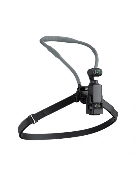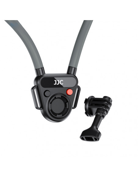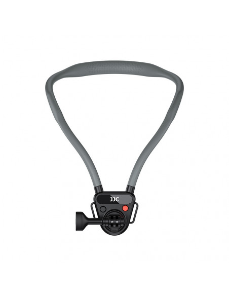 An authentic perspective The JJC MNM AC1 Magnetic Neck Holder for Action Camera is compatible with action cameras from various brands. It attaches your camera at chest or neck height, accurately capturing the user's field of view and simulating a first person perspective for POV (Point of View) recordings. Whether you're hiking, cycling or climbing, or recording vlogs or live streams during activities such as running, yoga or travelling, this neck holder is suitable for any task and helps viewers experience your perspective as authentically as possible. Highlights Compatible with action cameras from various brands Ideal for various POV recordings Ergonomic design Ergonomic design The surface of the neck mount is wrapped in soft silicone, which provides a silky smooth feel. The ergonomic design fits snugly around the neck for a comfortable wearing experience, even during prolonged use. The small air cushions on the back help absorb pressure on the chest, further enhancing overall comfort. Flexible adjustment The holder can be flexibly bent to adapt to your body contours, which increases the stability of the recording. An included Velcro chest strap helps reduce the impact of body movements on recording quality. Easy attachment It has only two buttons. The red button on the right allows you to quickly release the holder with a single press, while the black button on the left releases the action camera holder. The groove in the holder contains a built in magnet, which provides extra security to keep your device in place., Soft silicone for a smooth and comfortable feel Ergonomically designed Equipped with air cushions on the back for greater wearing comfort Flexibly bendable to adapt to the contours of the body With Velcro chest strap to minimise the impact of body movements. Two button design Magnetic design ensures a safer and more secure attachment Dimensions: 74.4 x 8.1 x 4.6 cm Weight: 171.5 grams 2 year warranty , 1 x Neck phone holder 1 x Velcro chest strap