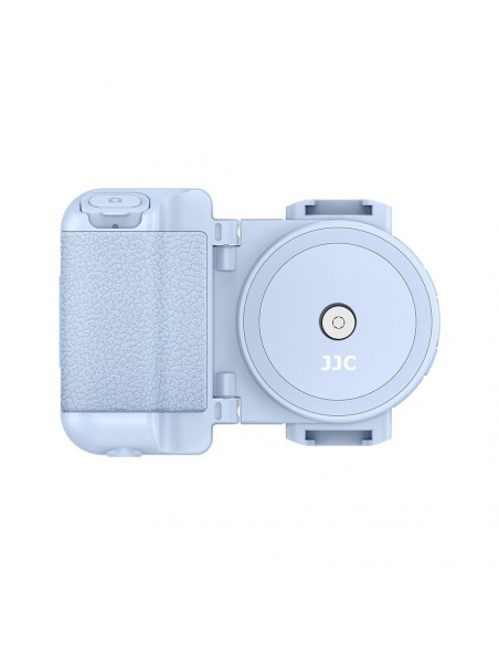 Phone Camera Grip The JJC MSG U1 Phone Camera Grip Blue optimises stability and reduces camera shake for smartphone photographers. Featuring a phone holder design, this grip offers seamless compatibility with various smartphones between 55 and 90mm wide. The phone holder has a cold shoe mount where you attach accessories such as a light or microphone. The grip features a bluetooth shutter release button that perfectly mimics the traditional photography experience. Highlights Optimises stability and reduces camera shake Seamless compatibility with different smartphones Suitable for smartphones with a width between 55 90mm Detachable bluetooth shutter button for easy photography Wireless remote control option for group shots and selfies Shutter button The bluetooth shutter button makes it easy to take photos with your index finger. This button is also detachable and can be used as a wireless remote control, which is particularly useful for group photos and selfies. Phone stand The handle folds out easily to be used as a phone stand, allowing hands free viewing in both portrait and landscape positions. Tripod holder With the universal 1/4â screw connector on the bottom, the Phone Camera Grip can be effortlessly attached to a tripod. , Suitable for smartphones with a width between 55 90mm Universal 1/4â screw connection Cold shoe mount on the phone holder Handle can be unfolded Detachable bluetooth Dimensions: 11 x 2.8 x 7.7 mm Weight: 84.9 g 2 year warranty , Rechargeable wireless remote control Allen spanner Phone cord Safety lanyard 50cm Type C cable English user manual