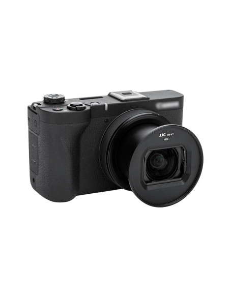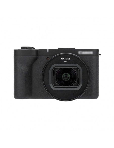 Filter adapter & lens cap set The JJC RN V1 Filter Adapter & Lens Cap Kit for Canon PowerShot V1 is specially designed for the Canon PowerShot V1. The set includes one filter adapter ring, one 58 mm lens cap and one lens cap holder. Highlights Specially designed for Canon PowerShot V1 Filter adapter ring supports the use of Φ58 mm filters Adapter ring uses 3M adhesive ABS lens cap protects the lens from scratches, moisture, dust and fingerprints Sturdy and durable The filter adapter ring is made of aluminium alloy, making it sturdy and durable. It supports the use of 58 mm filters. The back is equipped with 3M adhesive, which ensures a secure fit and can be removed without leaving any residue. Protected against dust and scratches The lens cap, made of high quality ABS material, has a thread size of 58 mm. It effectively protects your lens from scratches, moisture, dust and fingerprints. Thanks to the click design, the cap can be quickly attached and easily removed. The included lens cap holder helps to attach the cap to the camera so that it is not accidentally lost during use., Model: JJC RN V1 Weight: 21 g Filter adapter dimensions: â 6.05 à 0.41 cm Lens cap dimensions: â 6.20 à 1.09 cm Material: Aluminium alloy + ABS Warranty: 2 years , 1 x Filter adapter 1 x Lens cap 1 x Lens cap holder 1 x Spare 3M adhesive sticker 1 x Removal tool kit 1 x User guide
