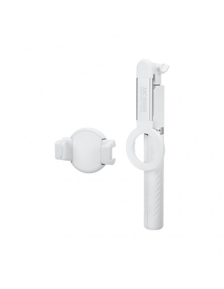 MagSafe Magnetic Selfie Stick Tripod The JJC SFM 1 MagSafe Magnetic Selfie Stick Tripod White is a revolutionary tool that offers a seamless blend of innovative technology and practical functionality. It is designed to help you explore new horizons in photography. Whether your phone has MagSafe capabilities, this selfie stick promises an unparalleled shooting experience. Highlights Stable and sturdy Bluetooth remote control MagSafe connector Light and durable Made with 5 piece aluminium telescopic poles, the SFM 1 selfie stick is light but durable and provides stable support for your device. With a telescopic range of 25 104 cm and a tripod height ranging from 35 96 cm, it adapts to different shooting scenarios with ease. Bluetooth remote control It has a detachable Bluetooth remote control for continuous use. The built in lithium battery is rechargeable via a USB C port without the need to replace the battery. The remote is compatible with both Apple and Android devices and can control the phone camera to start and stop photo or video recording. MagSafe connector The MagSafe connector for magnetic attachment is made of aluminium alloy for increased strength and stability. With 16 thickened N52 grade magnets, it generates a magnetic force of up to 2.2 kg, ensuring a secure and stable attachment that is 11.76 times heavier than an Apple 15 Pro phone. Thanks to its detachable design, the MagSafe magnetic mount connector can be transformed into a versatile GoPro mount, allowing direct connection to GoPro or DJI ACTION cameras. This versatility meets the needs of both smartphone and action camera users, all in one convenient selfie stick. Non slip handle The textured non slip handle provides a comfortable and secure grip. The additional MagSafe Magnetic Elastic Phone Clamp provides easy attachment to the SFM 1 selfie stick for phones without MagSafe functionality or non MagSafe phone cases. It is suitable for phones 55 90 mm wide and can be securely attached to the MagSafe magnetic disc on the selfie stick, with a swivel for added security, ideal for use in unstable environments. Stable and sturdy Unfolded, the selfie stick's legs transform into a stable tripod, with each foot fitted with non slip silicone pads for extra support. In addition, each leg has built in magnets for automatic locking and magnetic attachment. Supplied accessories such as magnetic sheets and positioning cards ensure quick attachment to the MagSafe Magnetic Disc for phones without MagSafe capability. , Weight: 227 g Dimensions: 8 x 24 x 5 cm Material: ABS + magnets + silicone 2 year warranty , 1 x JJC SFM 1 MagSafe Magnetic Selfie Stick Tripod White 1 x MagSafe Magnetic Elastic Phone Clamp 1 x Clear Protective Film 1 x 3M Adhesive Metal Ring 1 x Wet Cleaning Wipe 1 x Metal Ring Positioning Card 1 x 3A TYPE C Cable 1 x User guide