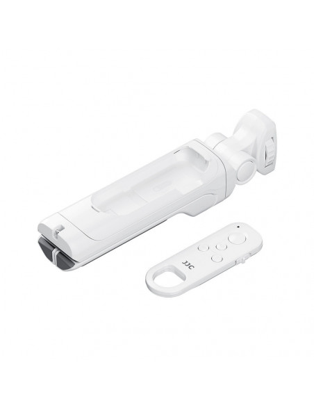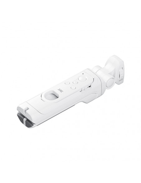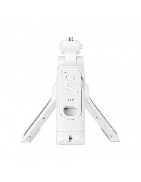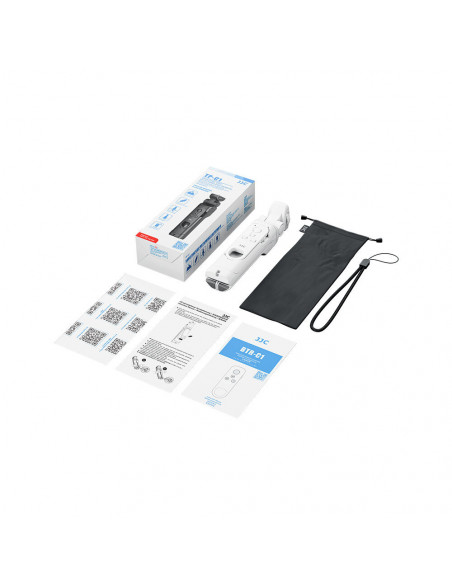 Tripod grip with wireless remote control The JJC TP C1 WHITE Shooting Grip with Wireless Remote is designed for vlogging, live streaming and selfies. The detachable wireless remote control replaces the Canon HG 100TBR and can be used to take photos, record video, zoom the camera, manually focus or select items, and select applications. Highlights Designed for selected Canon cameras Replaces the Canon HG 100TBR Ideal for vlogging, live streaming, selfies and group photos Compatibility of the TP C1 grip The JJC TP C1 grip with detachable wireless remote control is compatible with the Canon EOS R5, R6, R3 and a wide range of Canon DSLR cameras. Vertical shooting mode Use the vertical shooting mode to create videos for use on social media. Using the grip to take selfies makes your face appear smaller than when using the camera directly. Quick and easy to use The grip can be attached and removed quickly and easily by turning the thumb wheel. The non slip pads on the grip improve grip and stability., Made from high quality ABS and PC material Functions as a shooting grip and mini tripod Has a 360° rotation range and a 180° tilt angle Wireless remote control with a working distance of 10m Supports direct recording, video recording and more Non slip pads for stability and protection 1/4" 20 screw thread for easy attachment 2 year warranty , Wireless remote control CR2032 battery Storage pouch Key cord