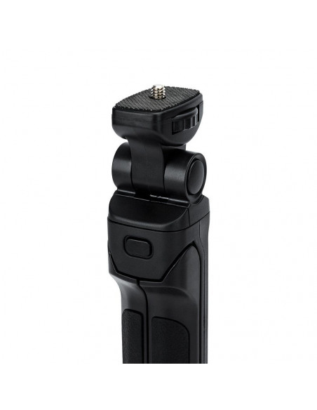 Shooting grip The JJC TP PA2 Shooting Grip is designed for the Panasonic Lumix S9 and G100D and offers a versatile solution for vlog shoots, livestreams and selfies. This grip combines the functions of a hand grip and a mini tripod, providing flexibility and stability in a variety of shooting situations. Highlights Specially designed for the Panasonic Lumix S9 and G100D Can be used as a handgrip or mini tripod 360° rotation and 180° tilting head Flexible tilt and rotation functions With a full 360° rotation and 180° tilting head, you can easily set the desired shooting angle. This makes the grip ideal for both horizontal and vertical shooting. Stability and ease of use The grip features non slip pads on the top, bottom and legs, keeping it steady on various surfaces. Thanks to the thumbwheel attachment, you can quickly and safely mount or remove the grip. With a load capacity of up to 1.2kg, the grip is suitable for compact cameras and light system cameras. Integrated camera control This grip provides direct control over the shutter, video recording and sleep mode for selected cameras via the supplied cable. This makes shooting even easier, even with one hand. The compact size and handy lanyard make the grip ideal for travelling., Maximum load 1.2 kg Integrated controls for shutter, video recording and sleep mode Anti slip pads for extra stability Easy mounting with thumbwheel Height as grip 193.5 mm Height as tripod 143.5 mm 2 year warranty , Connection cable Storage pouch Lanyard