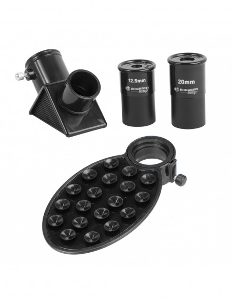 _x000D_ The BRESSER JUNIOR telescope is ideal for your first astronomical discoveries and is highly portable thanks to its lightweight design and compact size. It can be easily stored in a small bag or rucksack. The telescope also comes with a table stand so that you can set it up securely in different locations. it can also be converted into a terrestrial telescope for daytime observations. Simply remove the star diagonal and eyepiece. The refracting telescope comes with two eyepieces (12.5 mm and 20 mm), which allow you to choose between 20x and 32x magnification. These magnifications will give you an impressive view of the moon's craters, constellations and Saturn's rings. The telescope also features a built-in compass, and comes with a star diagonal to give you a comfortable view through the telescope.