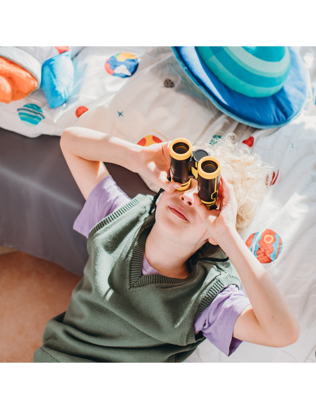 Get up close to colourful birds in your garden, or marvel at breathtaking landscapes on a camping trip – the NATIONAL GEOGRAPHIC 7x30 children’s binoculars are perfect for observing the wonders of nature. The binoculars have 7x magnification and feature a 30 mm lens diameter, which ensures that plenty of light reaches your eyes, rendering a bright image. They also come with a large focusing wheel for bringing your object into focus.