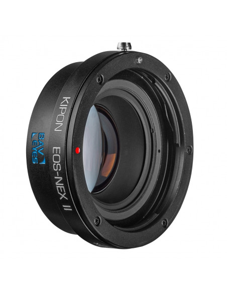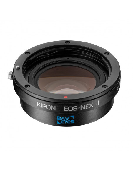 The KIPON BAVEYES EOS-NEX 0.7x II mounts Canon EOS EF series lenses onto Sony NEX series mirrorless camera bodies. Please note that after mounting the adapter, while infinity focus is available, only manual mode will be accessible in shooting. This adapter, designed by German optics research institution IB/E OPTICS, can mount full frame lenses onto APS-C frame camera bodies.There are four pieces of optical customized multiple layer coating glasses within the adapter.