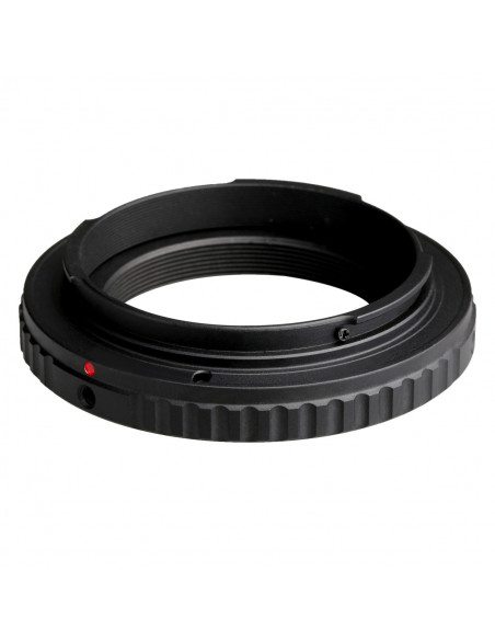 The T2 adapter connects T2 lenses and other attachments with a standardised T2 connection thread to your camera and its bayonet connection. It is screwed onto the lens of your reflex cameras and the lens can then be attached.
