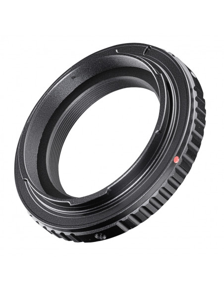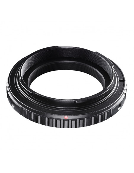 The T2 adapter connects T2 lenses and other attachments with a standardised T2 connection thread to your camera and its bayonet connection. It is screwed onto the lens of your reflex cameras and the lens can then be attached.
