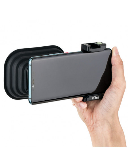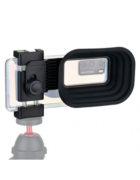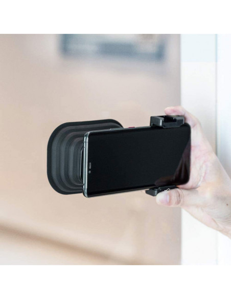 The LH SM1 is an Anti Reflection Hood for Smartphone to help you eliminate the window reflections and to get a clearer image. Perfect if you want to shoot night scenes through windows. Made of high quality silicone. Delivered with a removable Smartphone clip (clip range 56 95 mm), the clip features a water level, a cold shoe mount and two 1/4" threads to allow you to mount it on tripod or other devices.