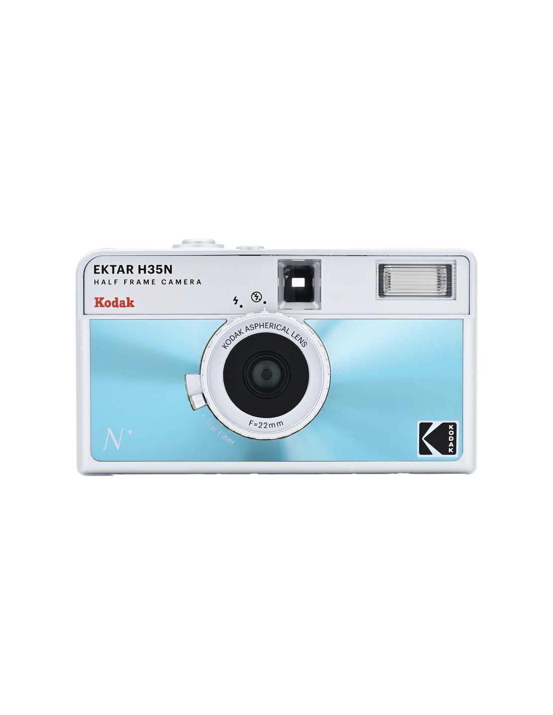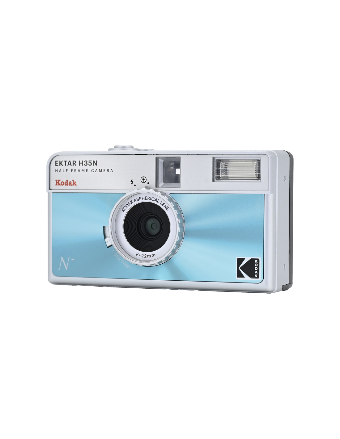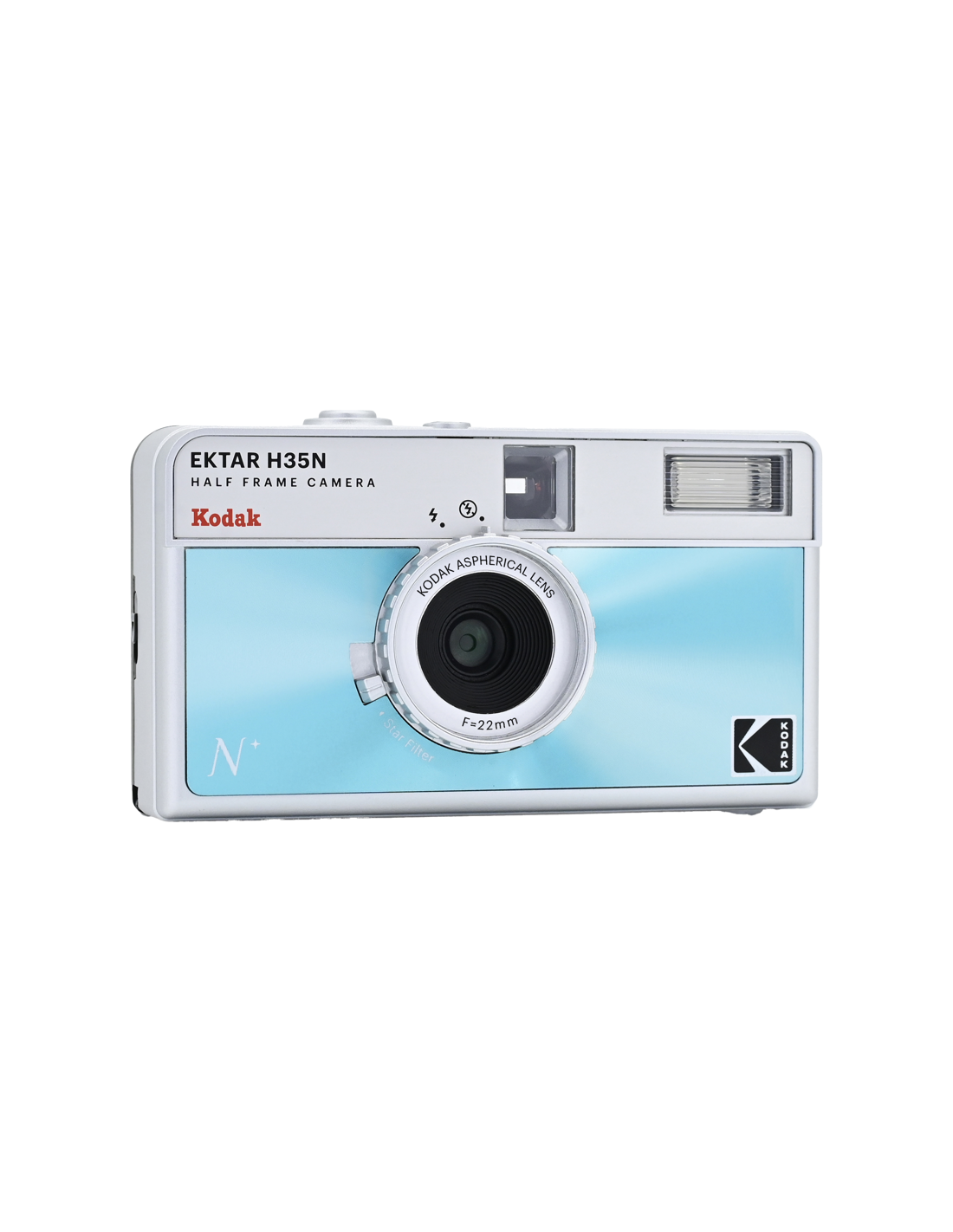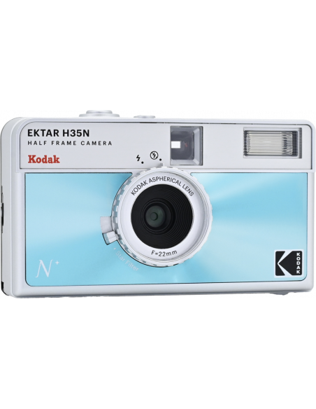 Det nye, forbedrede H35N-kamera har flere spændende funktioner, f.eks. et indbygget stjernefilter, en bulb-lukker, stativhul og en delvis glaslinse med coating.Half frame betyder, at hver eksponering er halvt så stor som en standardramme, hvilket resulterer i en mindre billedstørrelse, hvilket betyder, at du får 72 billeder på en 36-rulle og 48 billeder på en 24-rulle. Når du kigger gennem søgeren, ser du et lodret billede i stedet for et vandret, som du normalt gør.På det nye kamera har Kodak forbedret den optiske linse, og et element af akryllinsen er erstattet med en glaslinse, der hjælper med at forbedre billedets skarphed. Kameraet kommer også med et indbygget stjernefilter, der skaber en fire-strålet flare på lyspunkter.H35N er udstyret med en bulb-lukker og kabeludløser, som giver præcis kontrol over eksponeringstiden, hvilket gør det muligt at optage bevægelsesspor og gør det nemmere at bruge kameraet i svagt lys. Derudover er der indbygget et stativstik i kameraets base.Kameraet fås i seks stilfulde udgaver: stribet sort, stribet sølv, stribet grøn, glaseret blå, glaseret orange og glaseret pink.**NøglespecifikationerForbedret optikIndbygget stjernefilterPære-funktionRaffineret søger og tilbagespolingsknapStativFås i seks stilfulde udgaverFlash