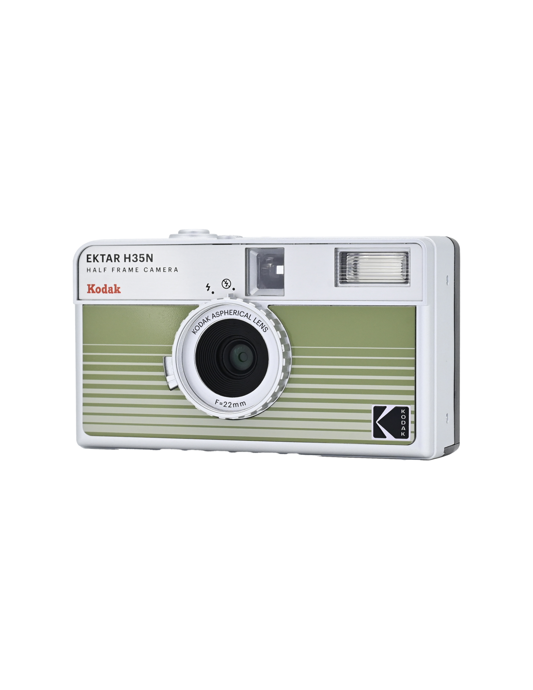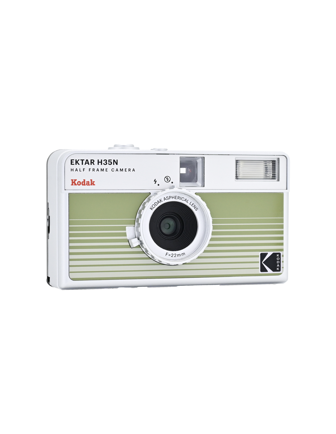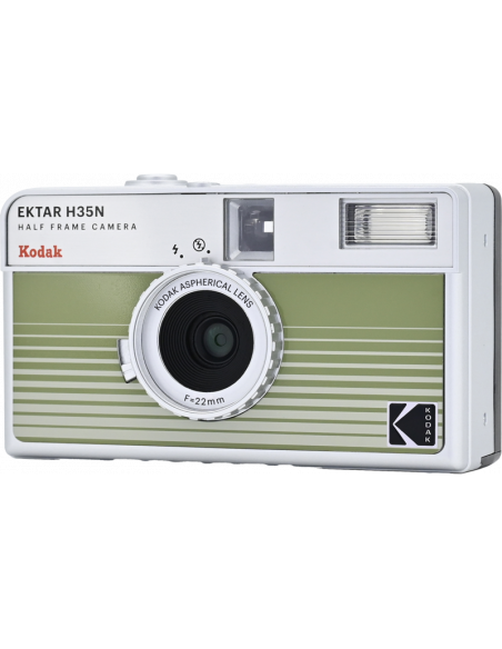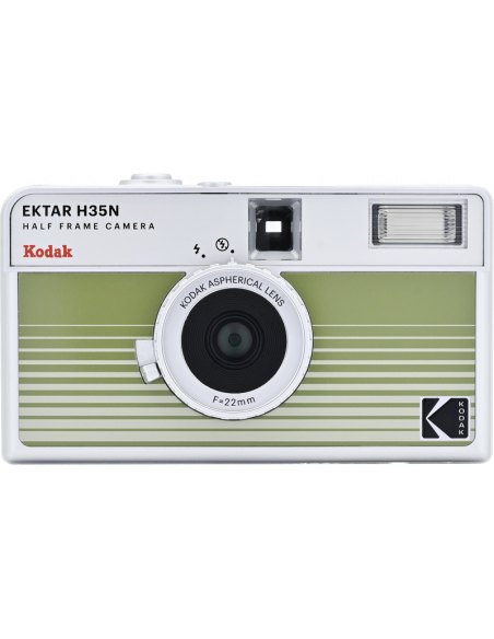 Det nye, forbedrede H35N-kamera har flere spændende funktioner, f.eks. et indbygget stjernefilter, en bulb-lukker, stativhul og en delvis glaslinse med coating.Half frame betyder, at hver eksponering er halvt så stor som en standardramme, hvilket resulterer i en mindre billedstørrelse, hvilket betyder, at du får 72 billeder på en 36-rulle og 48 billeder på en 24-rulle. Når du kigger gennem søgeren, ser du et lodret billede i stedet for et vandret, som du normalt gør.På det nye kamera har Kodak forbedret den optiske linse, og et element af akryllinsen er erstattet med en glaslinse, der hjælper med at forbedre billedets skarphed. Kameraet kommer også med et indbygget stjernefilter, der skaber en fire-strålet flare på lyspunkter.H35N er udstyret med en bulb-lukker og kabeludløser, som giver præcis kontrol over eksponeringstiden, hvilket gør det muligt at optage bevægelsesspor og gør det nemmere at bruge kameraet i svagt lys. Derudover er der indbygget et stativstik i kameraets base.Kameraet fås i seks stilfulde udgaver: stribet sort, stribet sølv, stribet grøn, glaseret blå, glaseret orange og glaseret pink.**NøglespecifikationerForbedret optikIndbygget stjernefilterPære-funktionRaffineret søger og tilbagespolingsknapStativFås i seks stilfulde udgaverFlash