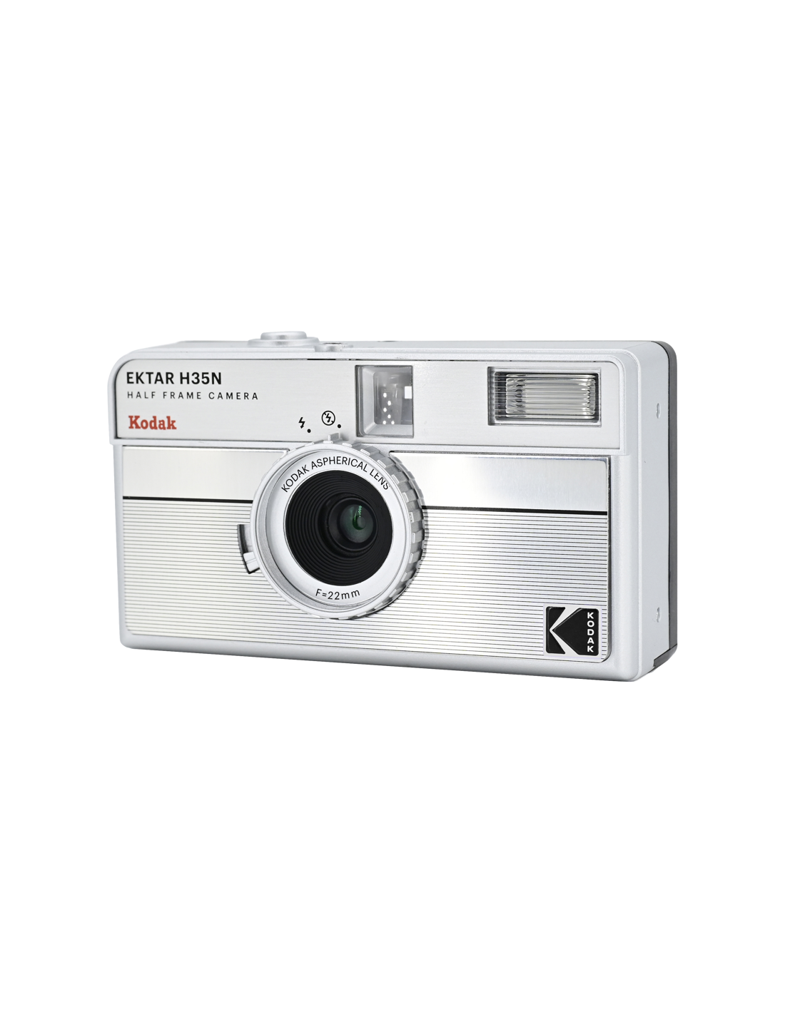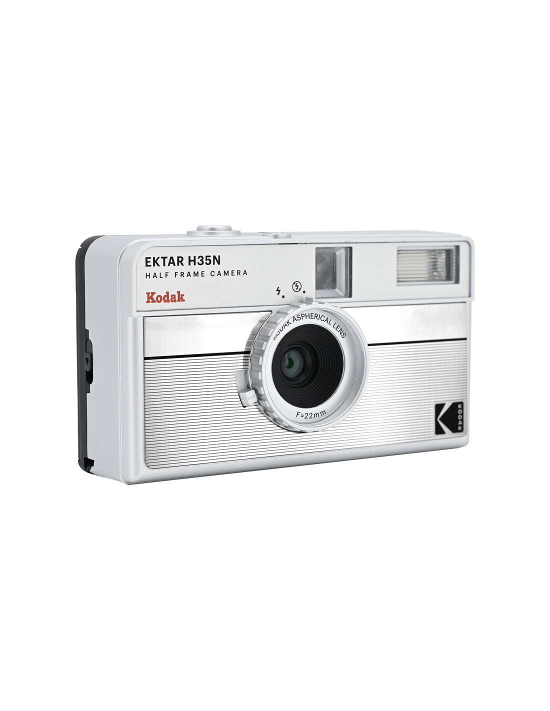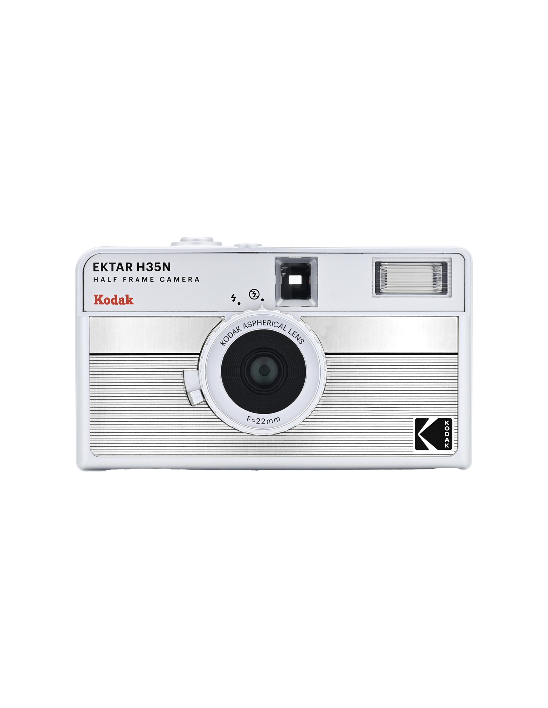 Det nye, forbedrede H35N-kamera har flere spændende funktioner, f.eks. et indbygget stjernefilter, en bulb-lukker, stativhul og en delvis glaslinse med coating.Half frame betyder, at hver eksponering er halvt så stor som en standardramme, hvilket resulterer i en mindre billedstørrelse, hvilket betyder, at du får 72 billeder på en 36-rulle og 48 billeder på en 24-rulle. Når du kigger gennem søgeren, ser du et lodret billede i stedet for et vandret, som du normalt gør.På det nye kamera har Kodak forbedret den optiske linse, og et element af akryllinsen er erstattet med en glaslinse, der hjælper med at forbedre billedets skarphed. Kameraet kommer også med et indbygget stjernefilter, der skaber en fire-strålet flare på lyspunkter.H35N er udstyret med en bulb-lukker og kabeludløser, som giver præcis kontrol over eksponeringstiden, hvilket gør det muligt at optage bevægelsesspor og gør det nemmere at bruge kameraet i svagt lys. Derudover er der indbygget et stativstik i kameraets base.Kameraet fås i seks stilfulde udgaver: stribet sort, stribet sølv, stribet grøn, glaseret blå, glaseret orange og glaseret pink.**NøglespecifikationerForbedret optikIndbygget stjernefilterPære-funktionRaffineret søger og tilbagespolingsknapStativFås i seks stilfulde udgaverFlash