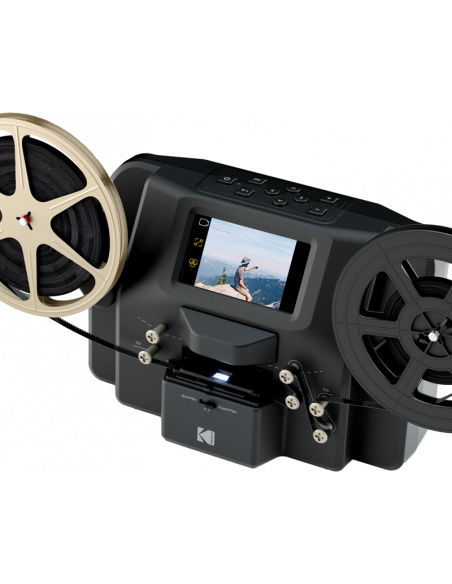 Filmdigitalisator med 8,08 MP-sensor og 1296p-opløsning.Alle dine yndlingsfilm på 8 mm og Super 8 mm kan nu konverteres, så moderne øjne kan se dem. Se dine restaurerede videoer fuldt ud og oplev underholdning fra fortiden på den bedst mulige måde. Med brugervenlige knapper kan du på ingen tid overføre og gemme slidte ruller på et SD-kort. Du skal aldrig mere bekymre dig om at miste dine gammeldags film.Med et fast fokussystem og automatisk eller manuel eksponeringskontrol (-2 til +2 EV) kan du nemt justere for at opnå perfekte resultater. Digitaliseringsenheden understøtter billedhastigheder på 20 fps og scanner med 2 billeder i sekundet for hurtig og effektiv digitalisering. Filoutput gemmes i MPEG-4-format, og lageret kan udvides med op til 128 GB via SD™-kort.Dimensioner: 31,5 x 15,4 x 21,3 cmBilledsensor: 8,08 megapixel (3280 x 2464) 1/3" CMOS-sensorNative opløsning: 1296pSkærm: 5″ TFT LCDHukommelseskapacitet: Op til 128 GB SD™-kortFiludgangsformat: MPEG-4Strømkilde: 12 V DCEksponeringskontrol: Auto, manuel (-2 til +2 EV)Hvidbalance: AutoBilledhastighed: 20 billeder/sek.Fokussystem: Fast fokusScanningshastighed: 2 billeder/sekSprogindstillinger: Engelsk/spansk/fransk/tysk/italienskUnderstøtter systemer: Windows XP, Vista/Windows 7, 8 og 10/Mac 10.7.3Kompatible filmrullestørrelser: 3" - 9" filmrulleDen er designet til at være nem at bruge og har en brugervenlig grænseflade med flersproget support (engelsk, spansk, fransk, tysk og italiensk). Kompatibilitet med Windows XP til 10 og Mac 10.7.3 sikrer problemfri integration med din nuværende opsætning. Drives af en pålidelig 12 V DC-kilde.Hvad er der i kassen:KODAK REELZ Film Digitizer7″ tom filmrulleAC/DC-adapterGrå rulleadapterRød rulleadapterMicro USB-kabelRengøringskludBrugervejledning