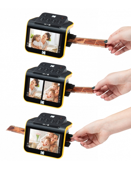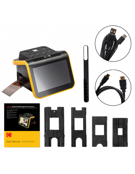 Scan farve- og sort/hvid-negativer (135, 110, 126) og 50 mm-dias (135, 110, 126) for at bevare dine dyrebare minder digitalt og holde dem levende i mange år fremover. Juster farver, roter billeder og meget mere for virkelig at bringe disse dyrebare minder tilbage til livet, og tilslut derefter scanneren til dit tv, og bliv nostalgisk med et diasshow i høj kvalitet på storskærm.**FunktionerKompatibel med tre filmtyperForhåndsvisning af billeder med det sammeTilslut og vis billeder på dit tvStor, klar LCD-skærm til visningOne-touch scanningMulighed for kontinuerlig fremføring af negativerDigital fotoramme-tilstandPC/Mac®-kompatibel - kræver ingen softwareIntegreret billedredigering**Pakken indeholderDigital filmscanner50 x 50 mm diasholderAdapter til 135 filmAdapter til 110 filmAdapter til 126 filmRengøringsbørsteUSB-kabelHDMI-kabelBrugervejledningDer er to valgmuligheder for billedopløsning:14MP 4320x2880 pixels / 3200 Dpi22MP 5728x3144 pixels / 4200 Dpi**SpecifikationerGrænseflade: USB 2.0Billedsensor: 14,0 megapixel (4320x3252) 1/2,33′′ CMOS-sensorOpløsning: 14MP/22MP (interpolation)Understøttede filmtyper: 50 mm dias (135, 110, 126)Negativ farvefilm (135, 110 og 126)Sort/hvid negativ film (135, 110 og 126)TV-udgangstype: HDMIUnderstøttelse af ekstern hukommelse: SD SDHC-kort maks. 32 GB (SDXC-kort understøttes ikke)Strøm: Fra computerens USB-port, 5V/1A strømadapter (medfølger ikke), Power BankDimensioner: 5,27′′ D x 5,35′′ B x 3,74′′ H (95 x 136 x 134mm)Vægt: 380 gram (13,4 oz)