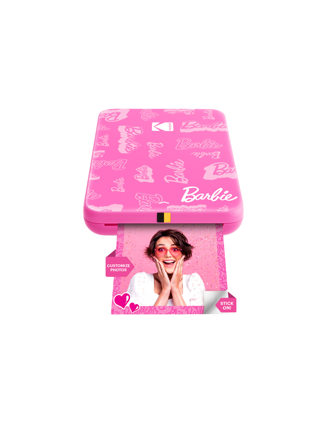 BARBIE X KODAK ICONIC AND STYLISH Træd ind i en verden af glamour med Barbie og Kodak. Denne smarte letvægtsprinter i lommeformat udskriver op til 25 fotos på en enkelt opladning.      Bærbar udskrivning på farten  BARBIE X KODAK STEP SLIM-printeren tilsluttes problemfrit til enhver iOS- eller Android-enhed [via Bluetooth eller NFC], så du nemt kan forvandle dine digitale billeder til udskrifter.    Hent appen, flere funktioner, mere sjov Optag, rediger, print og del dine fotos. Opret nemt forbindelse til dine foretrukne sociale netværk, og upload nye med et enkelt tryk. Forbedr dine billeder på få sekunder.    ZINK Zero Ink Printing-teknologi eliminerer behovet for blæk, tonere eller patroner. Den producerer levende Zink-print i fuld farve på fotopapir med selvklæbende bagside, som er smudsafvisende, vandafvisende og rivefast.    Klar, parat, klæb Print alle dine yndlingsminder på 2" X 3" ZINK Zero Ink-fotopapir med klæbende bagside. Print dit foto, træk bagsiden af, og sæt dit klistermærke på hvad som helst på få sekunder. ©2024 Mattel